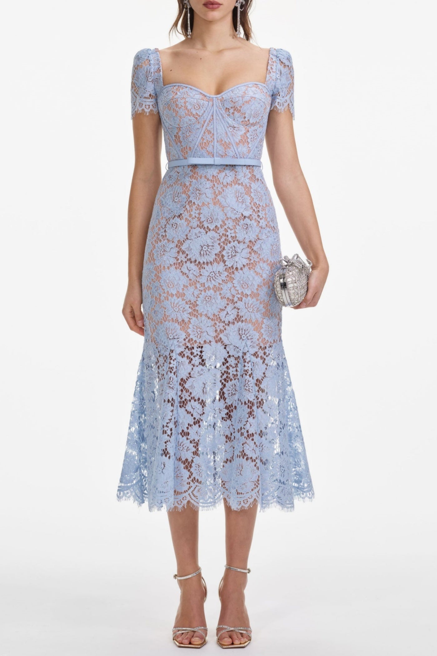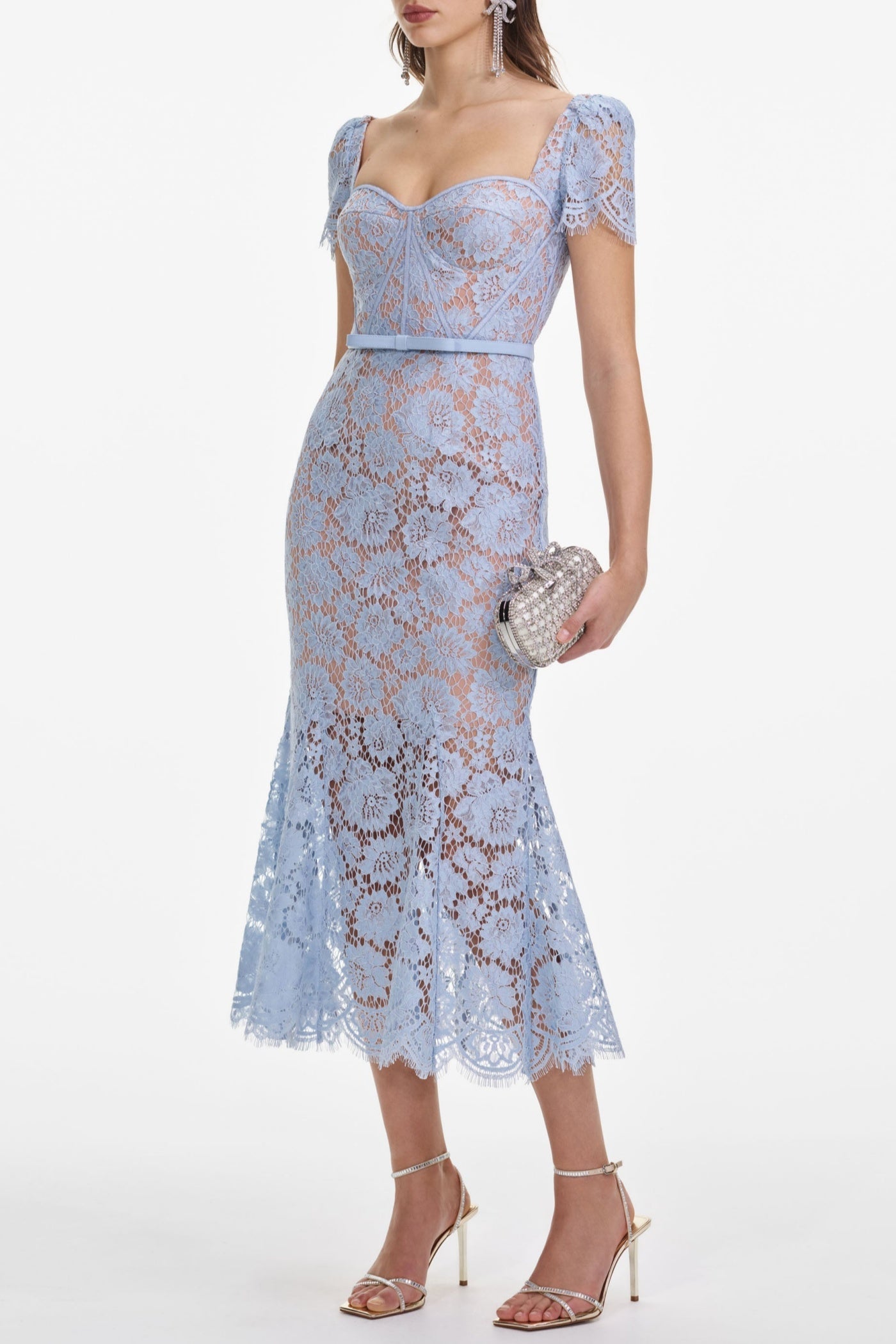 Josef Lace Bow Belted Midi Dress - Blue