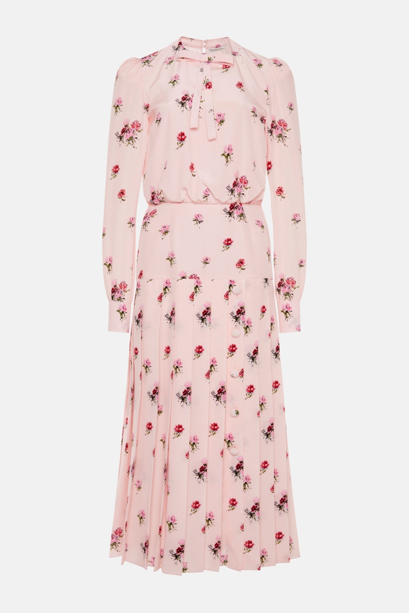 Indulge in luxury with our Jutalak Rose Print Pleated Midi Dress. Featuring a stunning rose print and elegant pleats, this dress will make you feel like a work of art. Its midi length adds a touch of sophistication, perfect for any upscale occasion. Elevate your wardrobe with this exclusive piece.