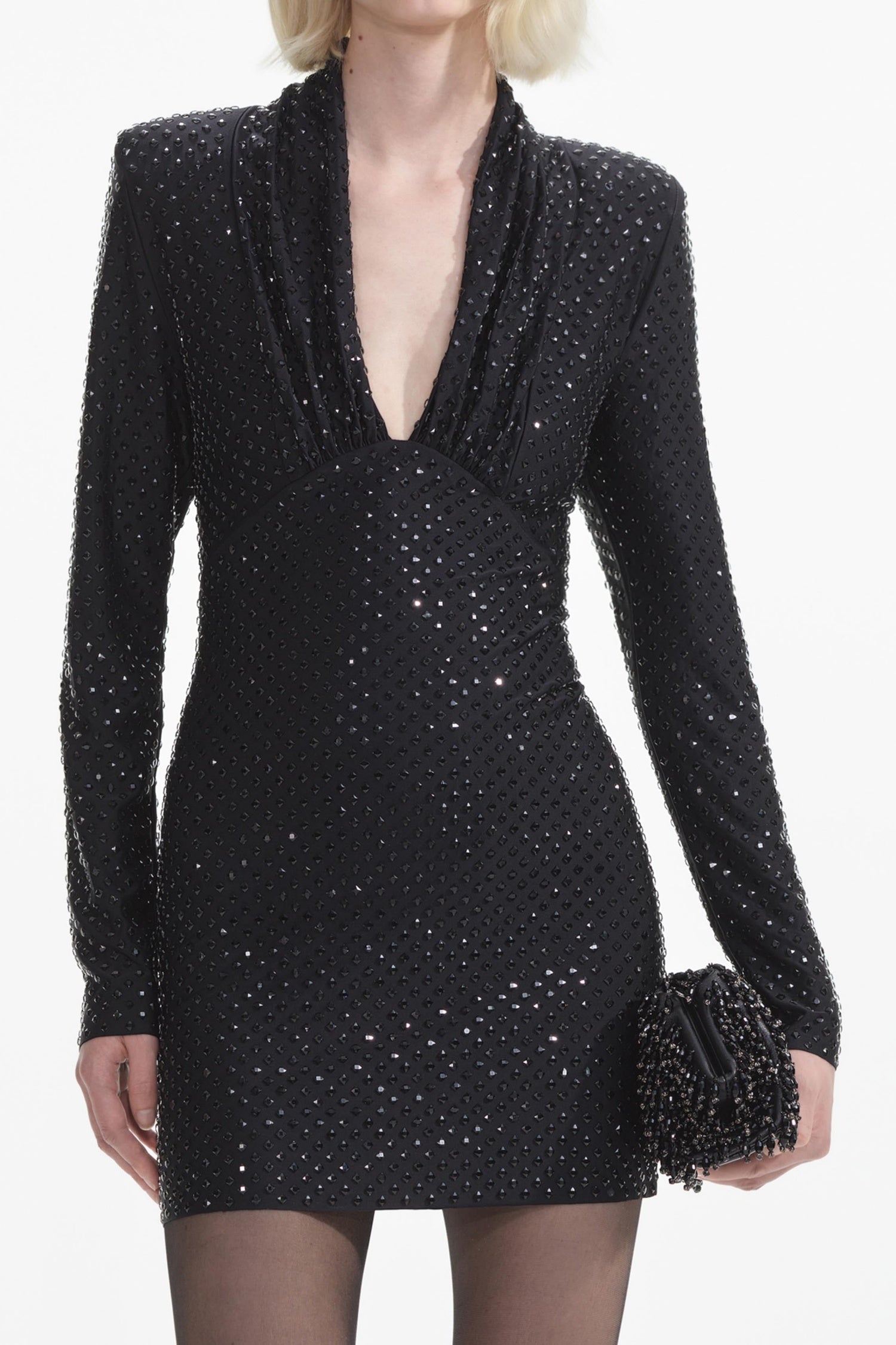 Indulge in luxury with our elegant Kawhi Rhinestone Embellished Mini Dress. This exquisite garment boasts intricate rhinestone embellishments, elevating your style to new heights. Let your inner goddess shine as you showcase the stunning details and feel like a true fashion icon in this exclusive piece.