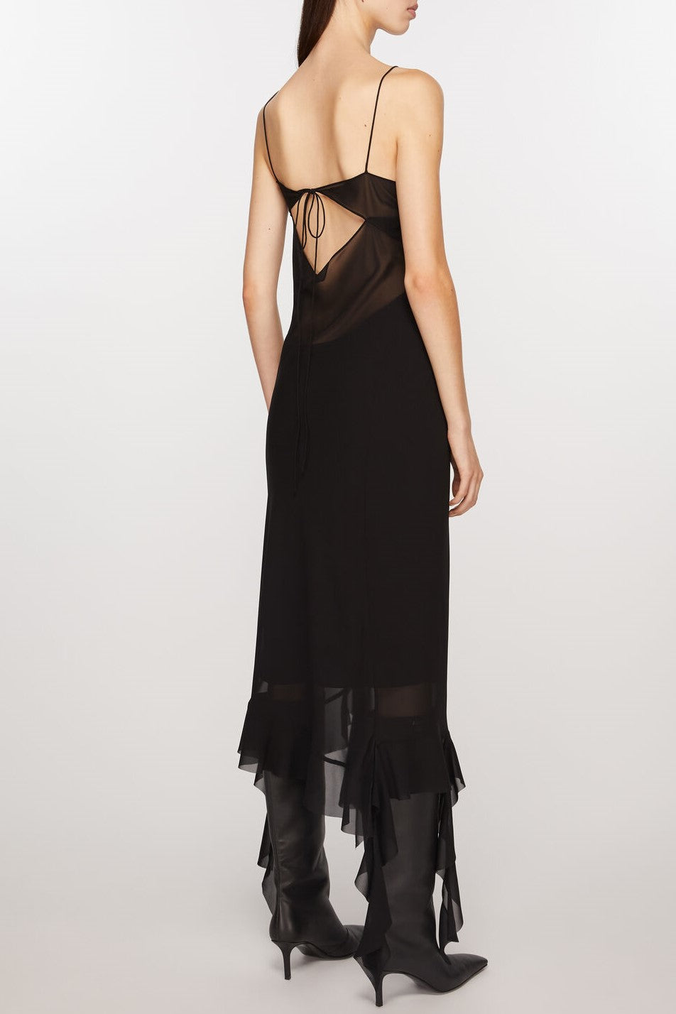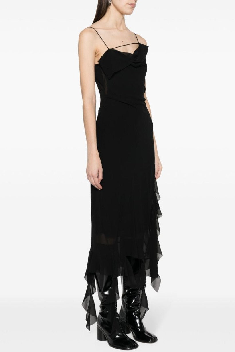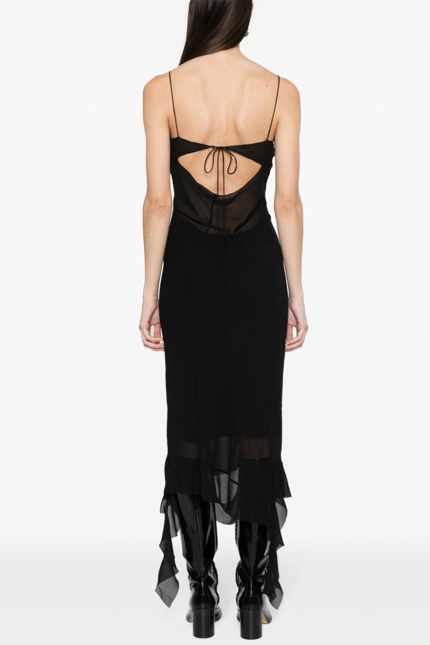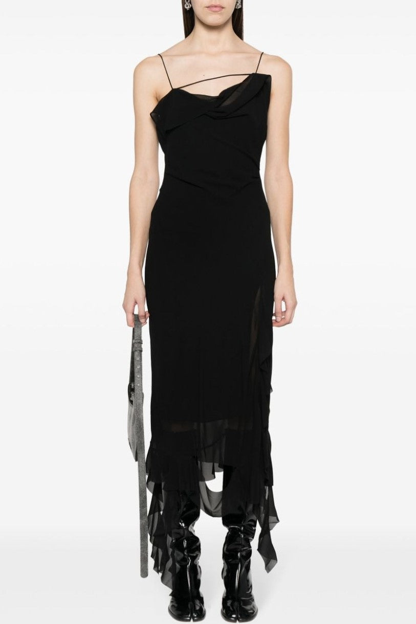 Kenzia Asymmetric Ruffle Midi Dress - Black