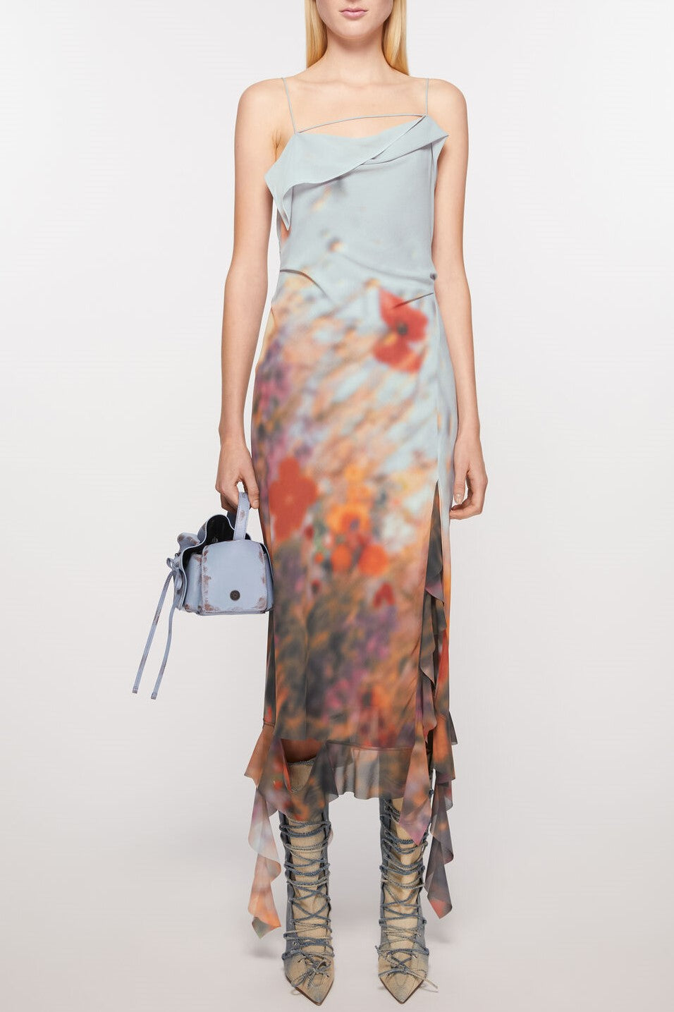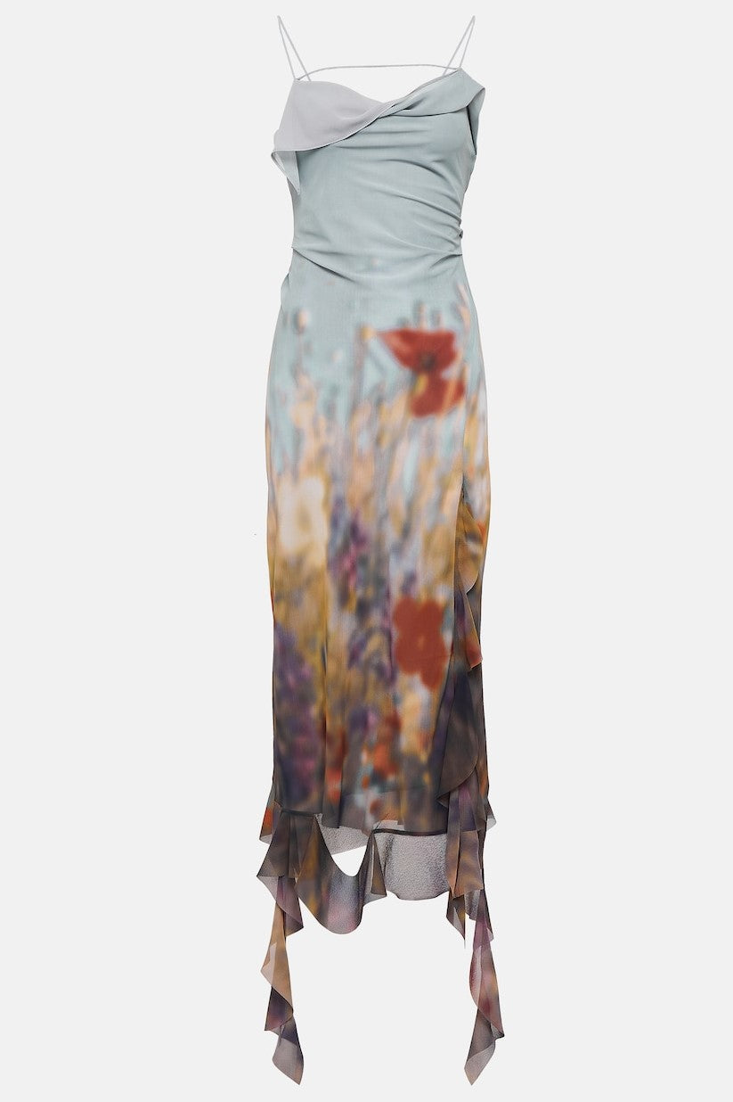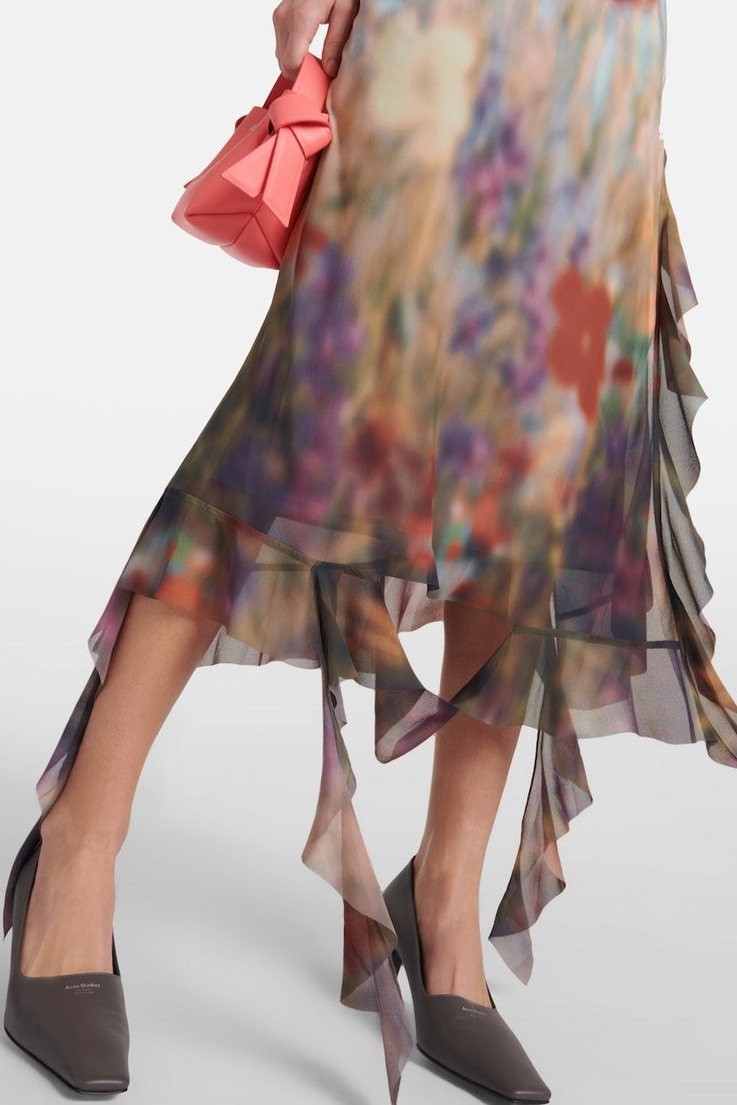 Kenzia Printed Asymmetric Ruffle Midi Dress