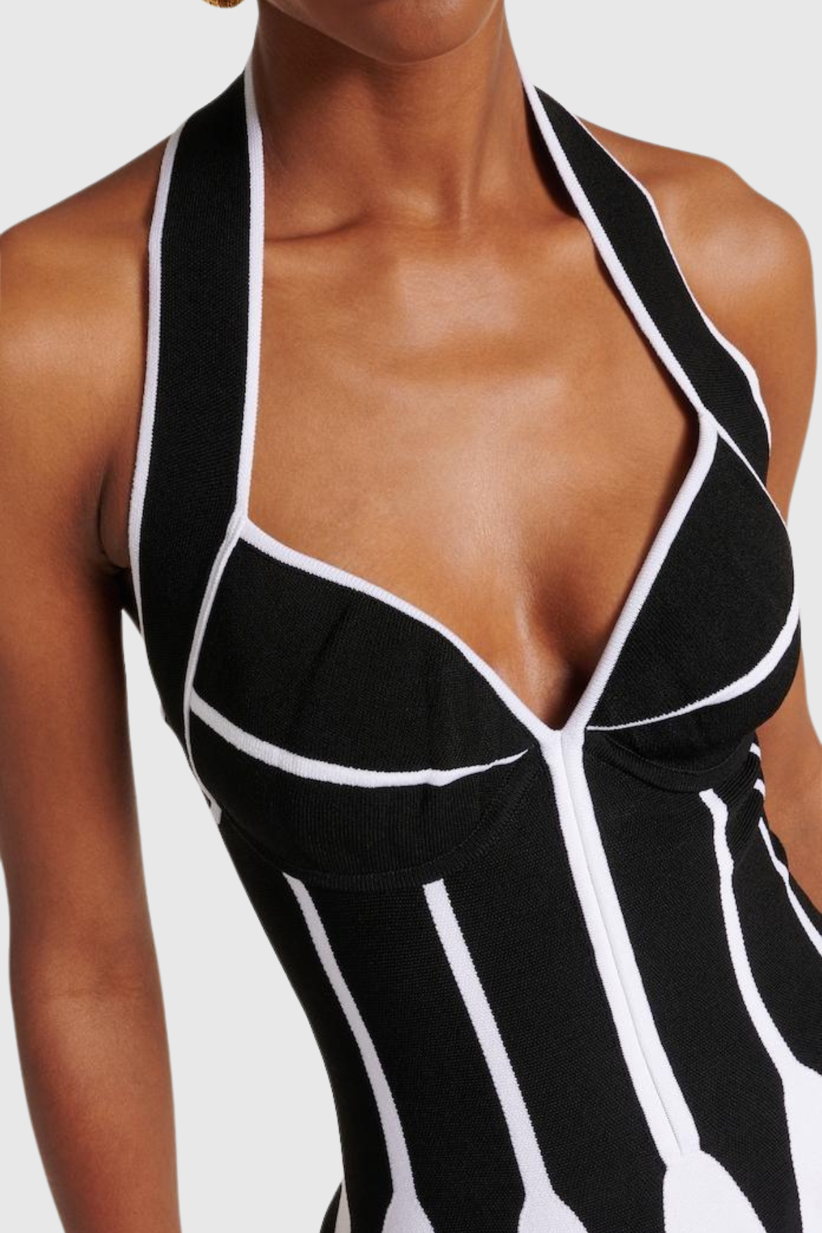 Be the envy of the party in this Kriaden Flared Halter Knit Mini Dress! The perfect combination of trendy and comfortable, this dress features a flattering halter neckline and a flared skirt that will have you twirling all night long. Stay effortlessly stylish and confident in this must-have dress.