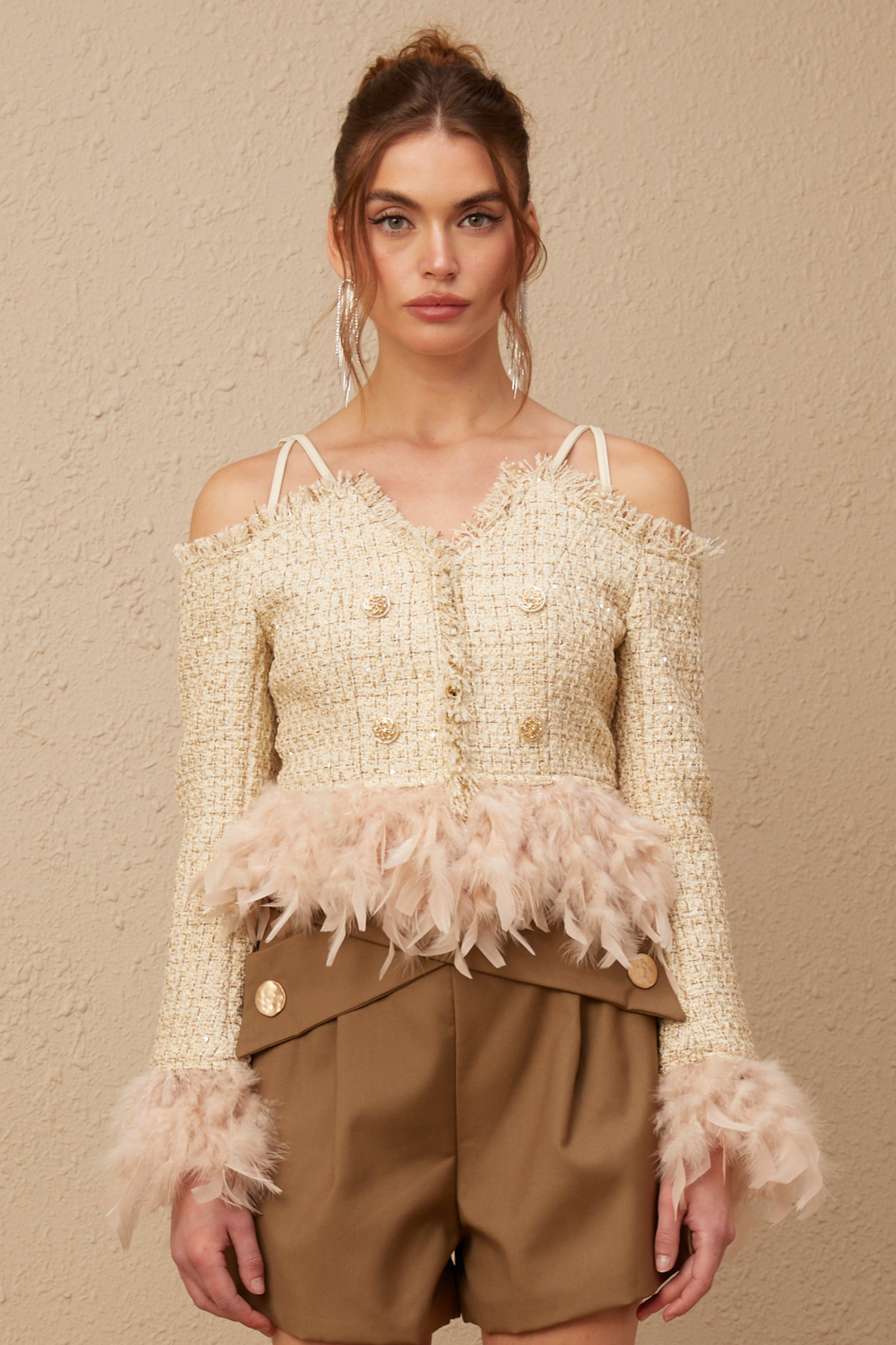 • Composition: 95.4% Terylene, 4.6% Metallic, 100% Turkey feather