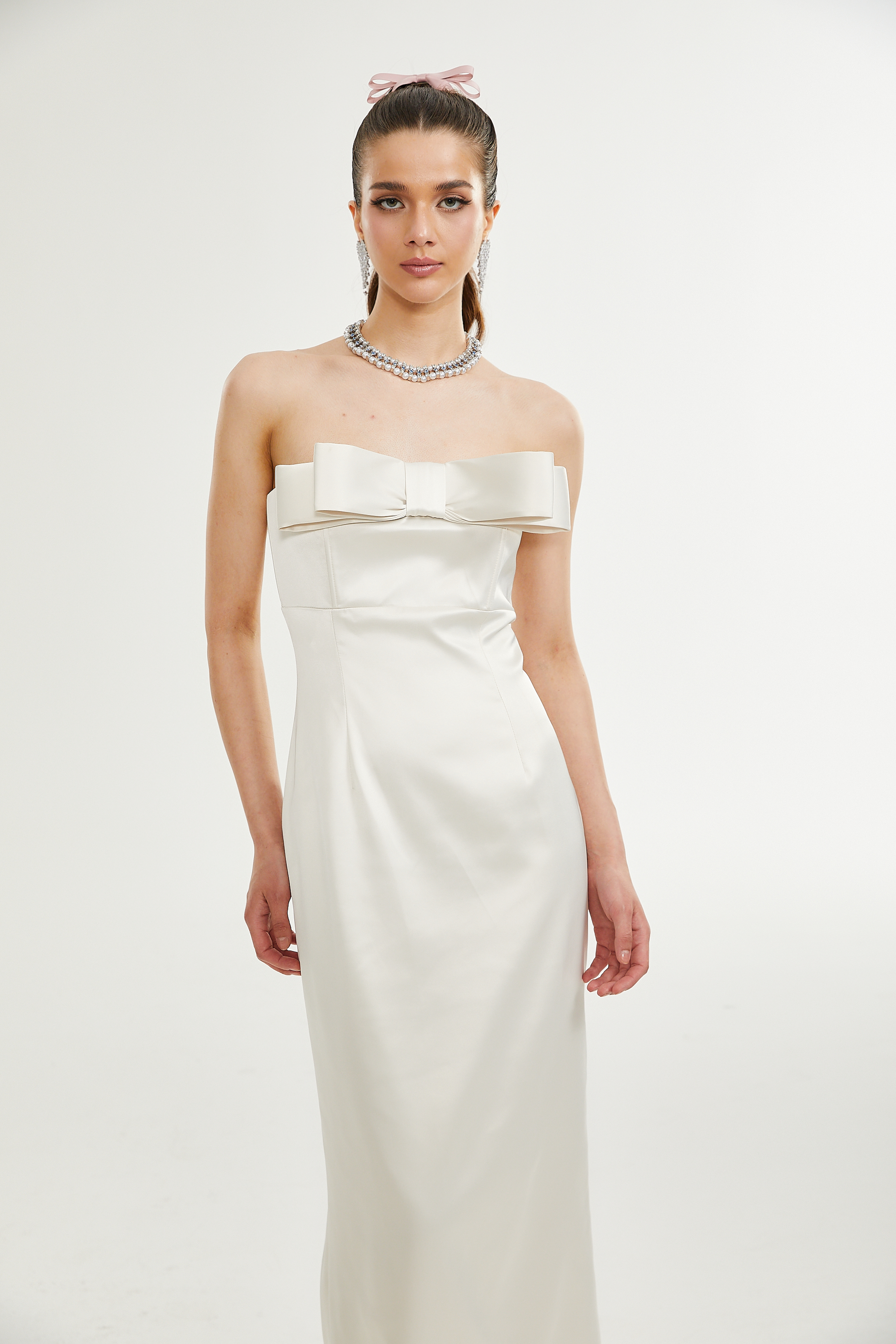 Lana bow-detail off-shoulder dress