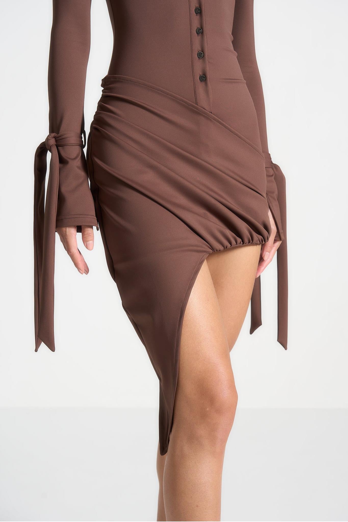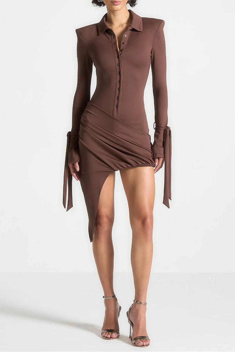 Elevate your wardrobe with the Lazuli Draped Asymmetric Mini Dress, a refined piece that blends modern silhouette with elegant draping. Its asymmetric design creates a striking visual appeal, while the mini length offers a confident, chic look. Perfect for sophisticated evenings or stylish events, this dress effortlessly balances boldness and grace, ensuring you stand out with understated glamour.