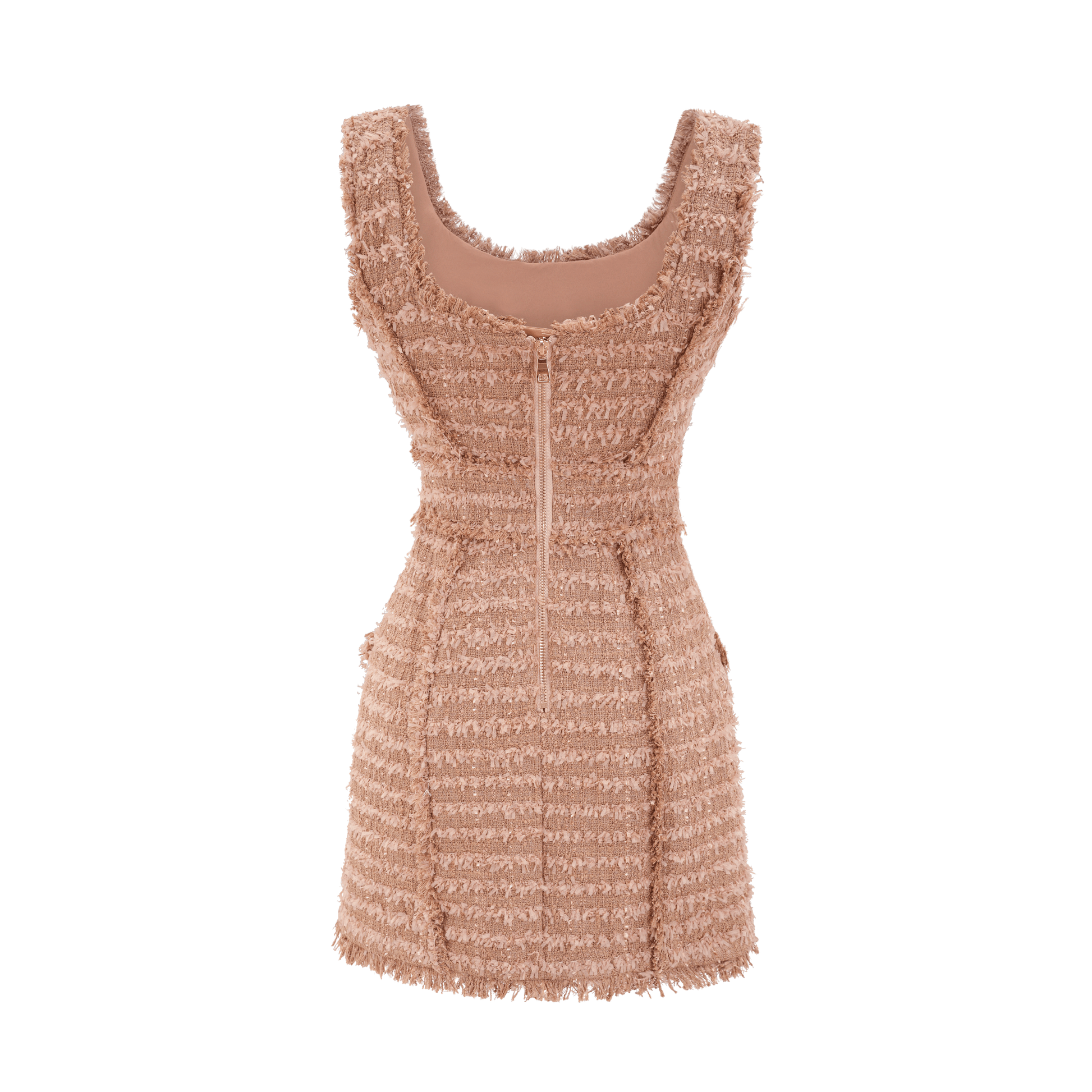 • Exposed rear zip fastening