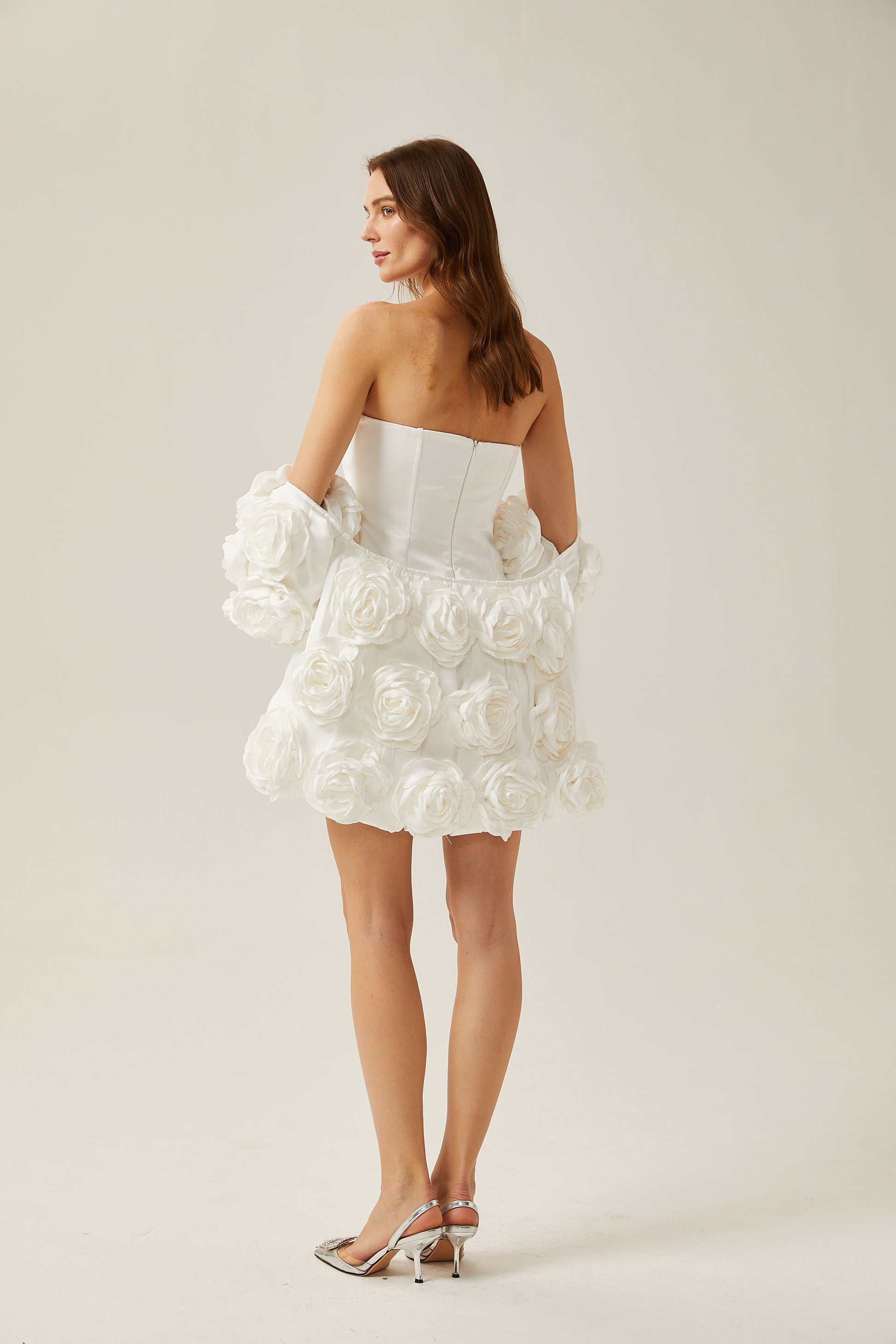 Liliane white floral-appliqué bolero & dress matching set