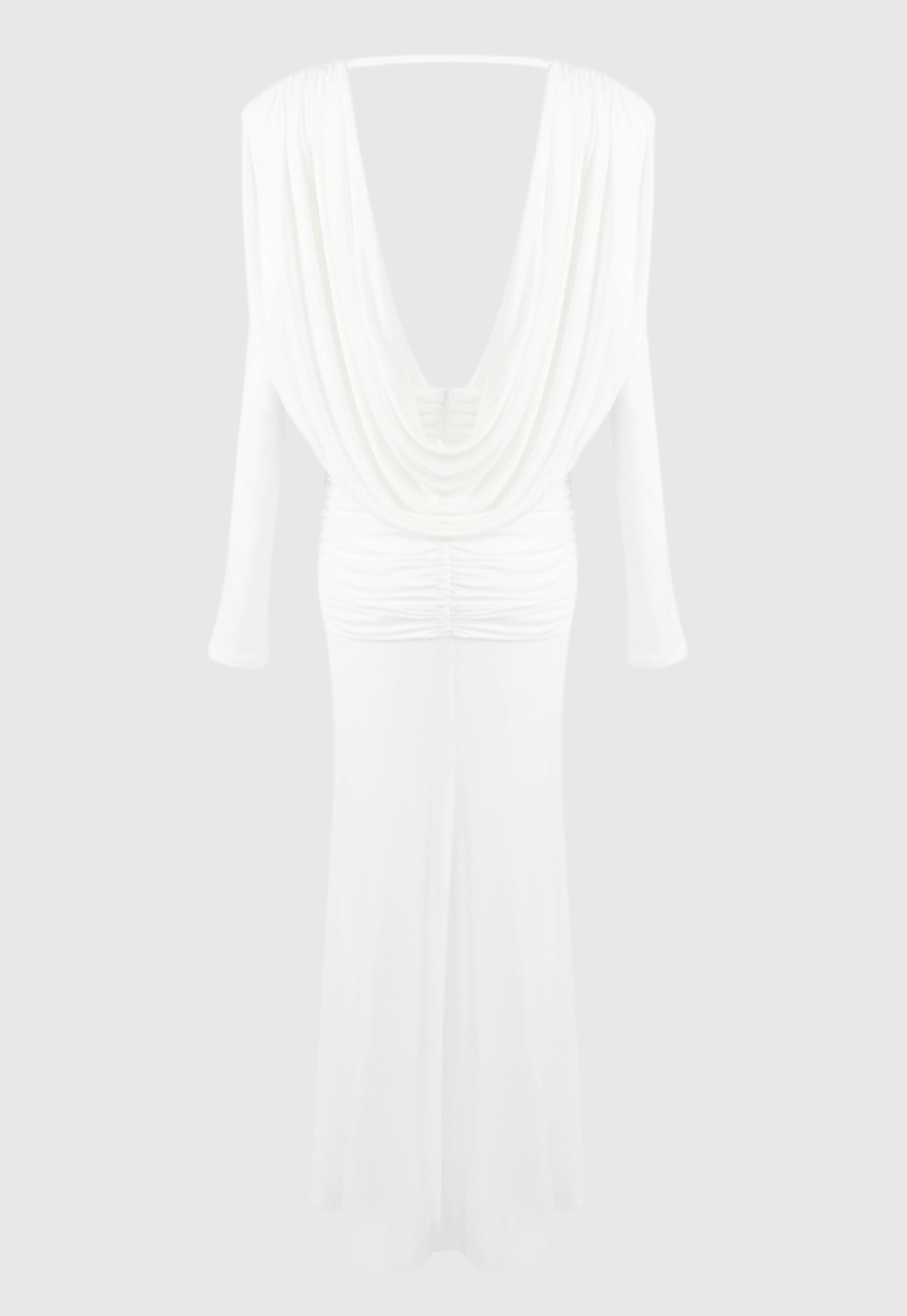 Unleash your inner thrill-seeker with the Linus V-neck Draped Backless Maxi Dress. With its daring backless design and dramatic draped details, this dress will make you stand out from the crowd. Perfect for bold fashionistas who are not afraid to take risks and make a statement.