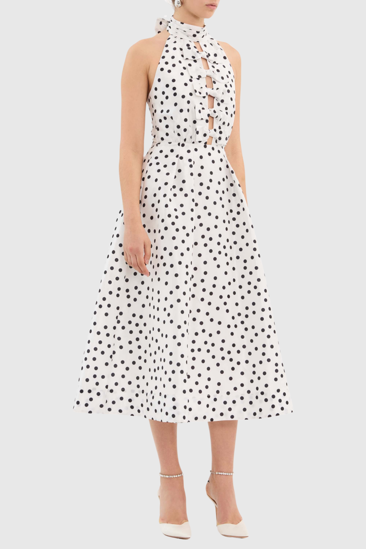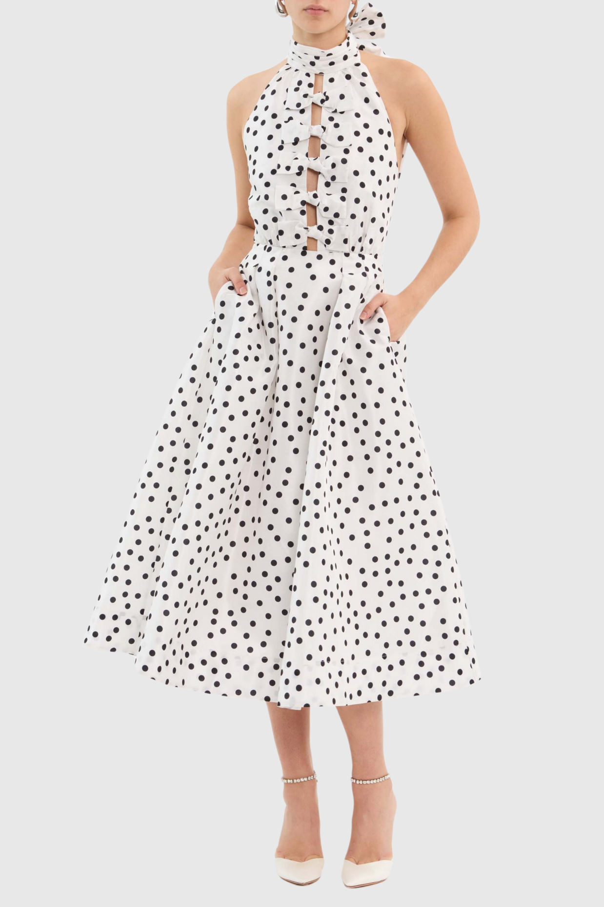 Londa Halter Polka Dot Bow Cutout Midi Dress