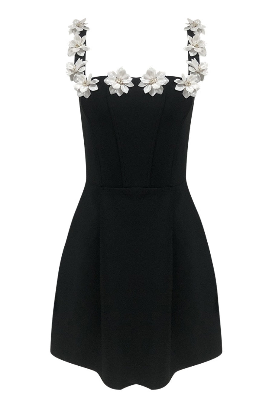 Lyra Floral Embellished Mini Bandage Dress - Black
