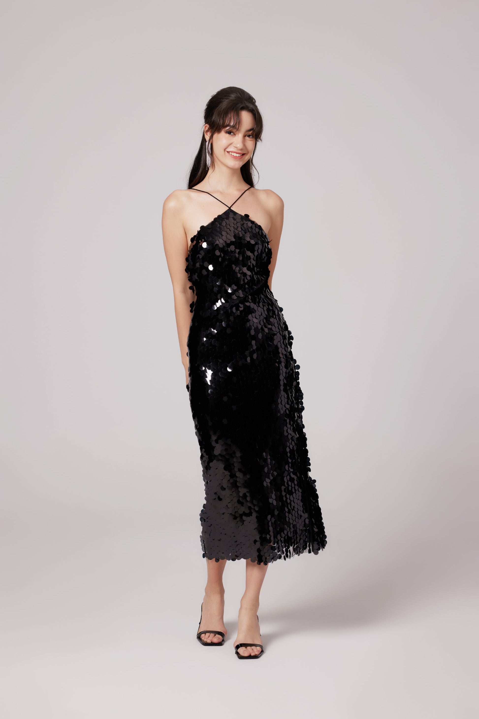 Lysandra black embellished midi dress