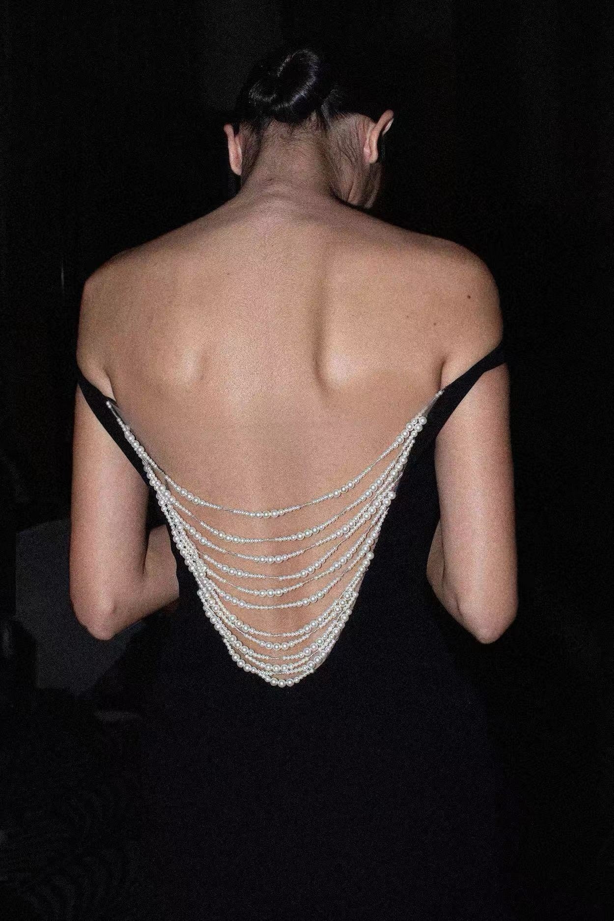 Elevate your evening look with the Macsen Pearl Beaded Off Shoulder Maxi Dress. This backless dress features delicate pearl beading and an off-shoulder design, exuding elegance and sophistication. Perfect for any special occasion, this dress will make you feel like a true luxury brand connoisseur.