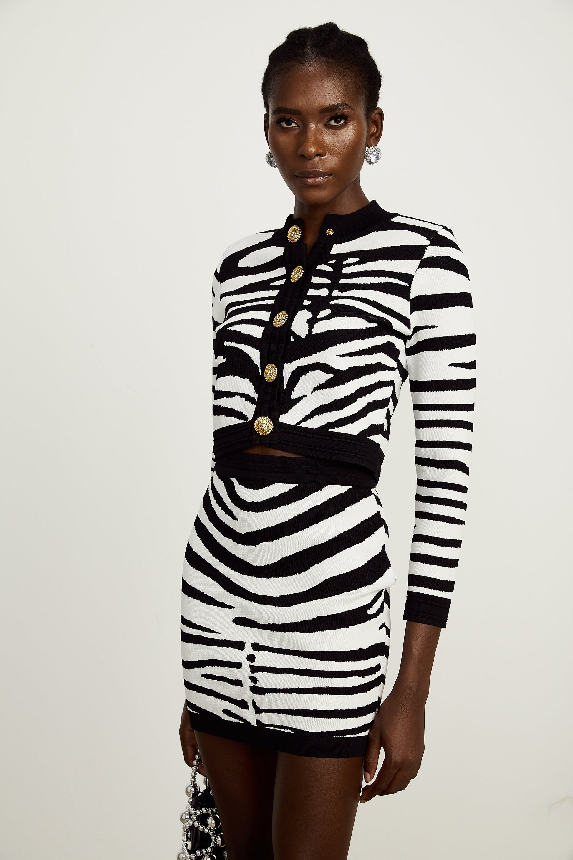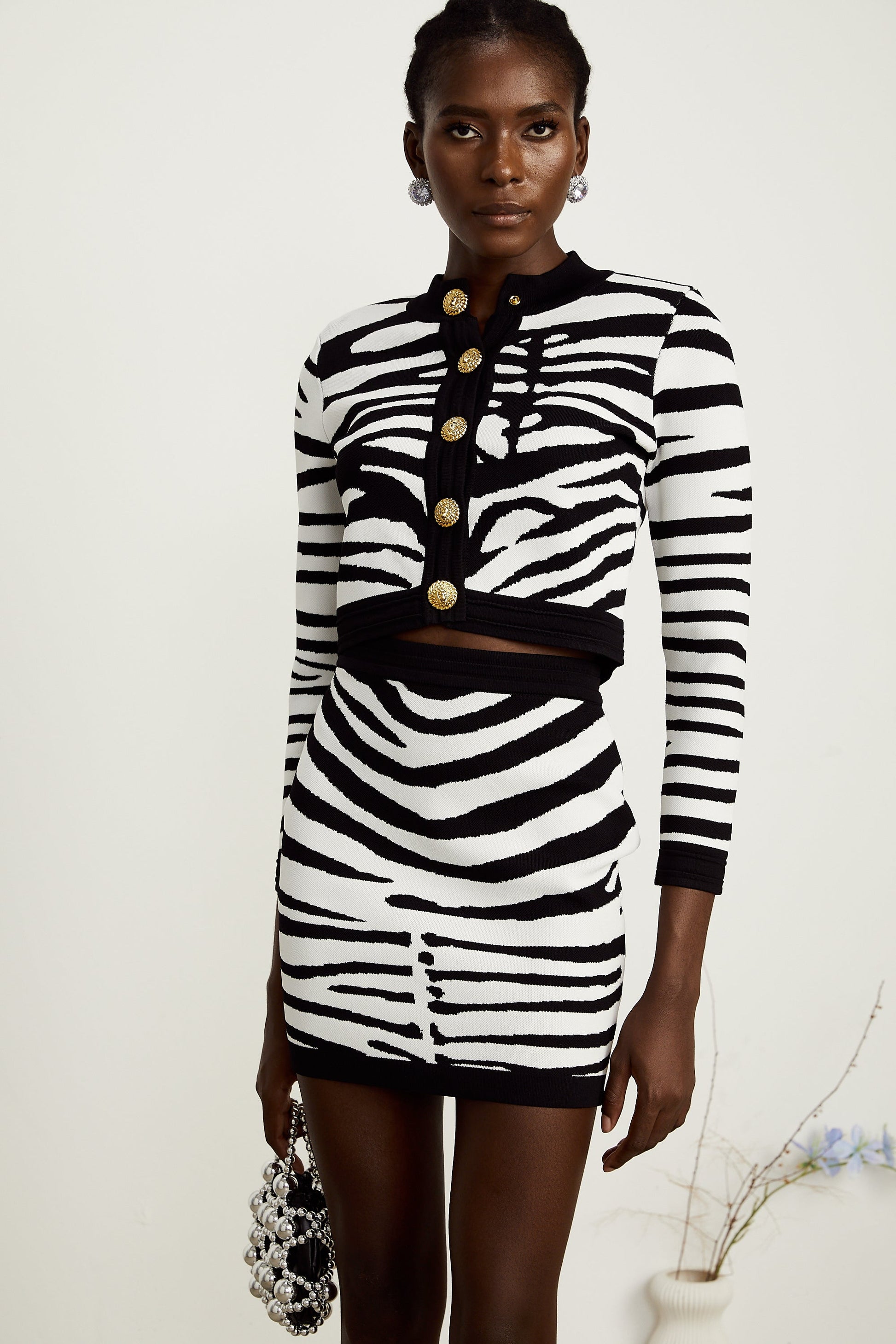 Madeleine zebra-print knitted cardigan & skirt matching set