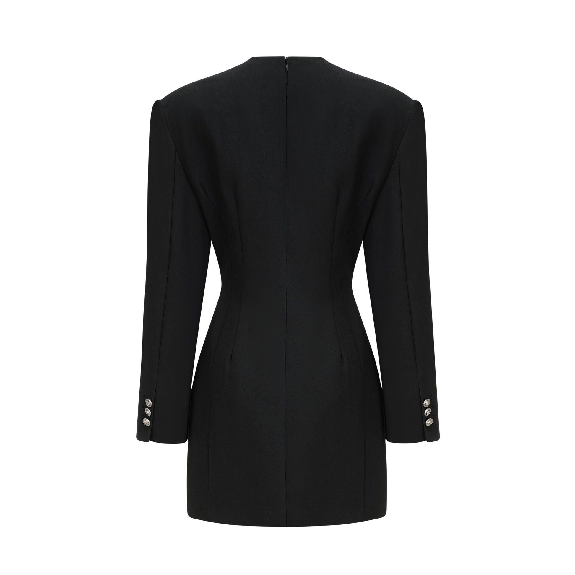 Magali black hourglass shoulder-padded mini dress