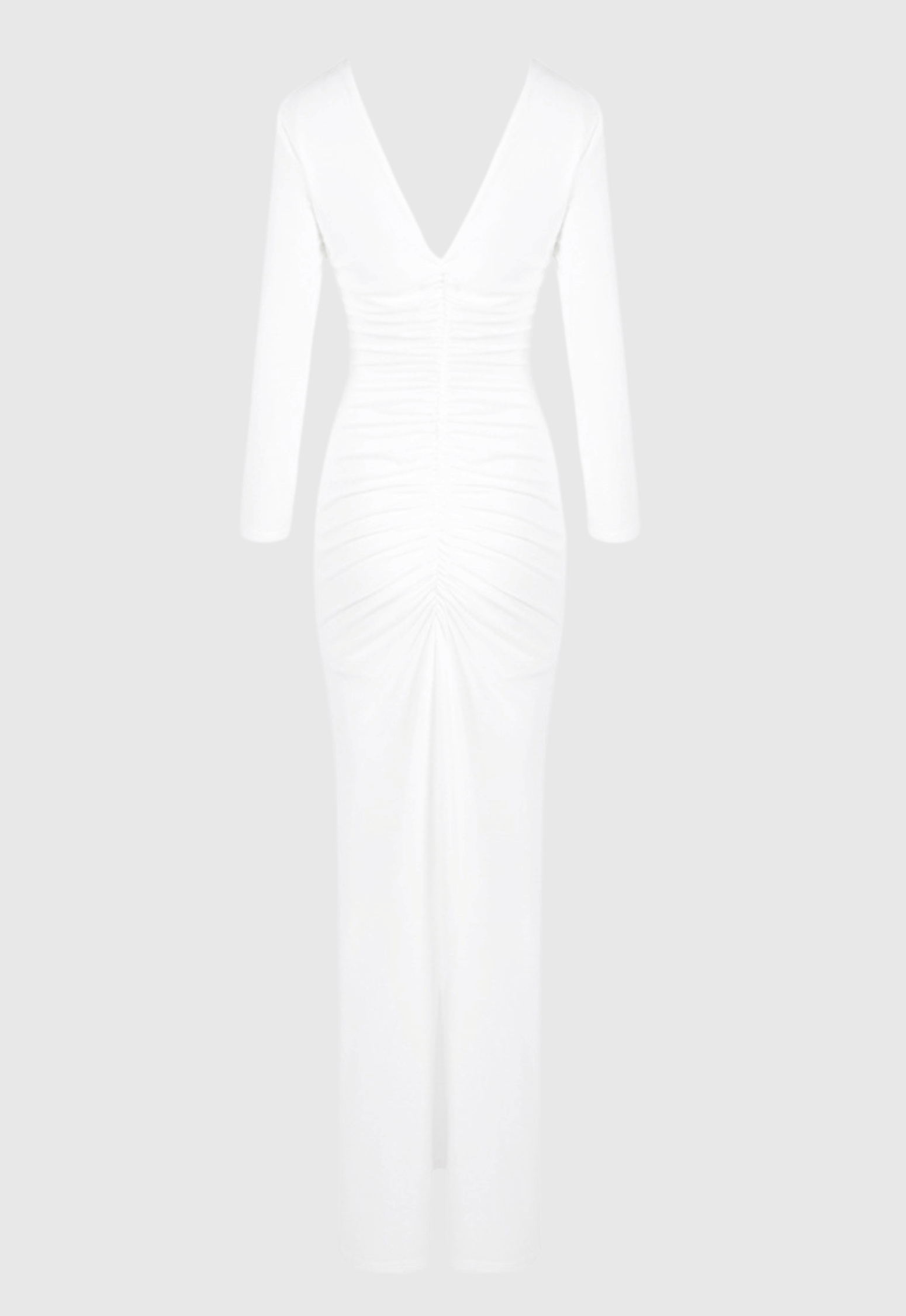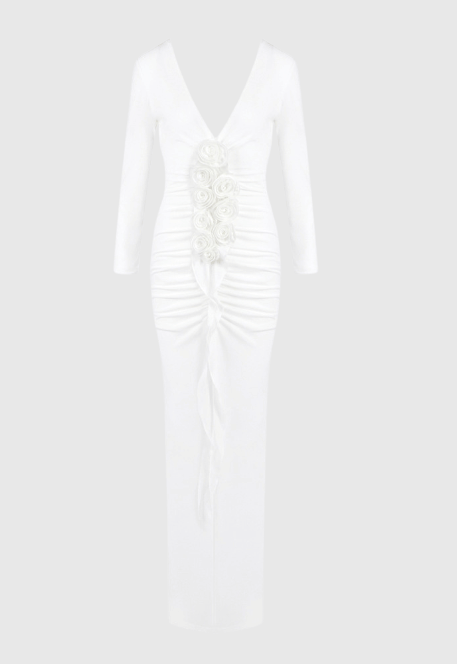 Elevate your style with the Manik Floral Ruched Maxi Dress. Featuring intricate ruching and a stunning floral print, this dress exudes sophistication and elegance. Its flowing maxi length creates a graceful silhouette, perfect for any occasion. Elevate your wardrobe with this luxurious and exclusive piece.