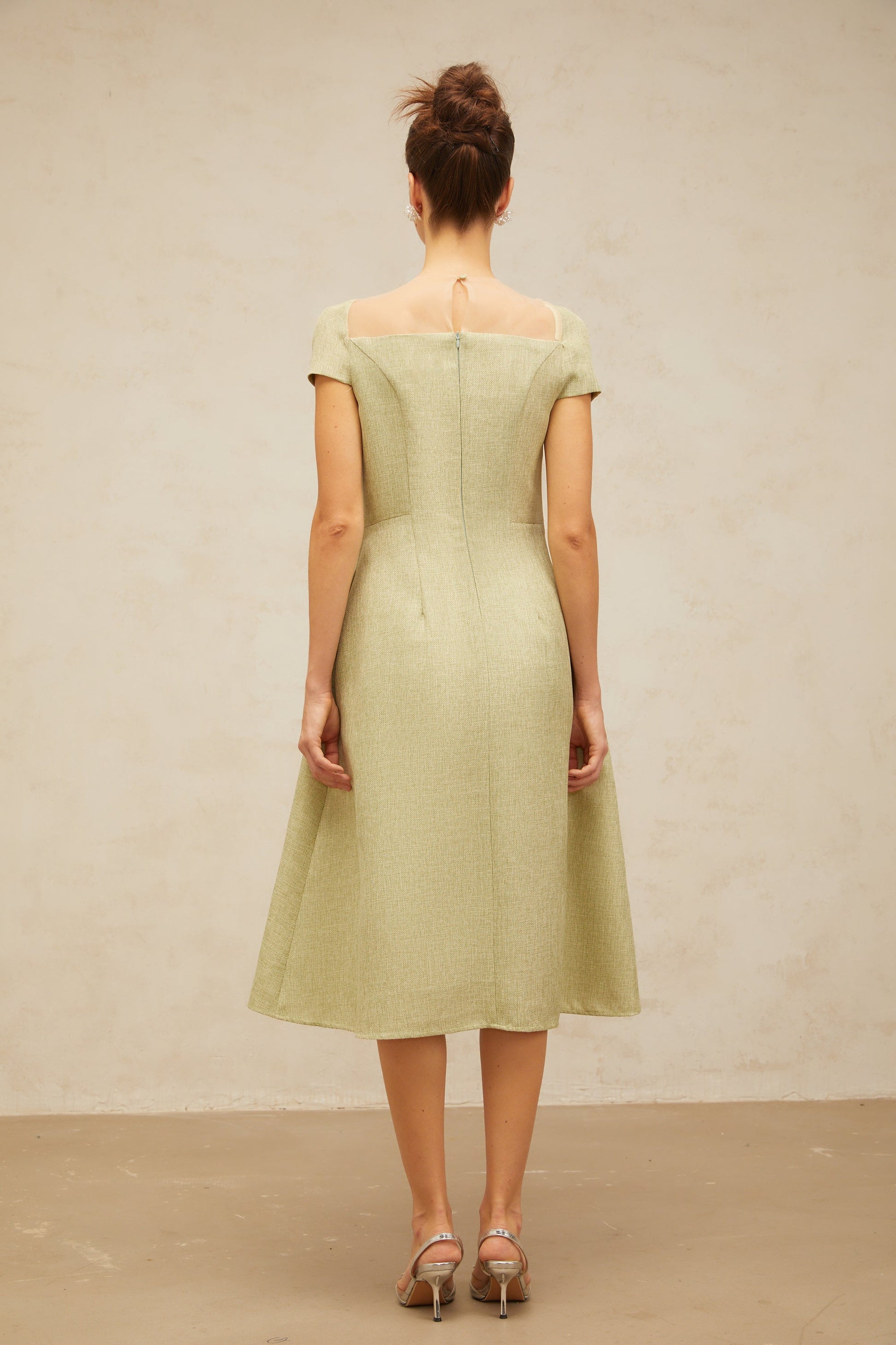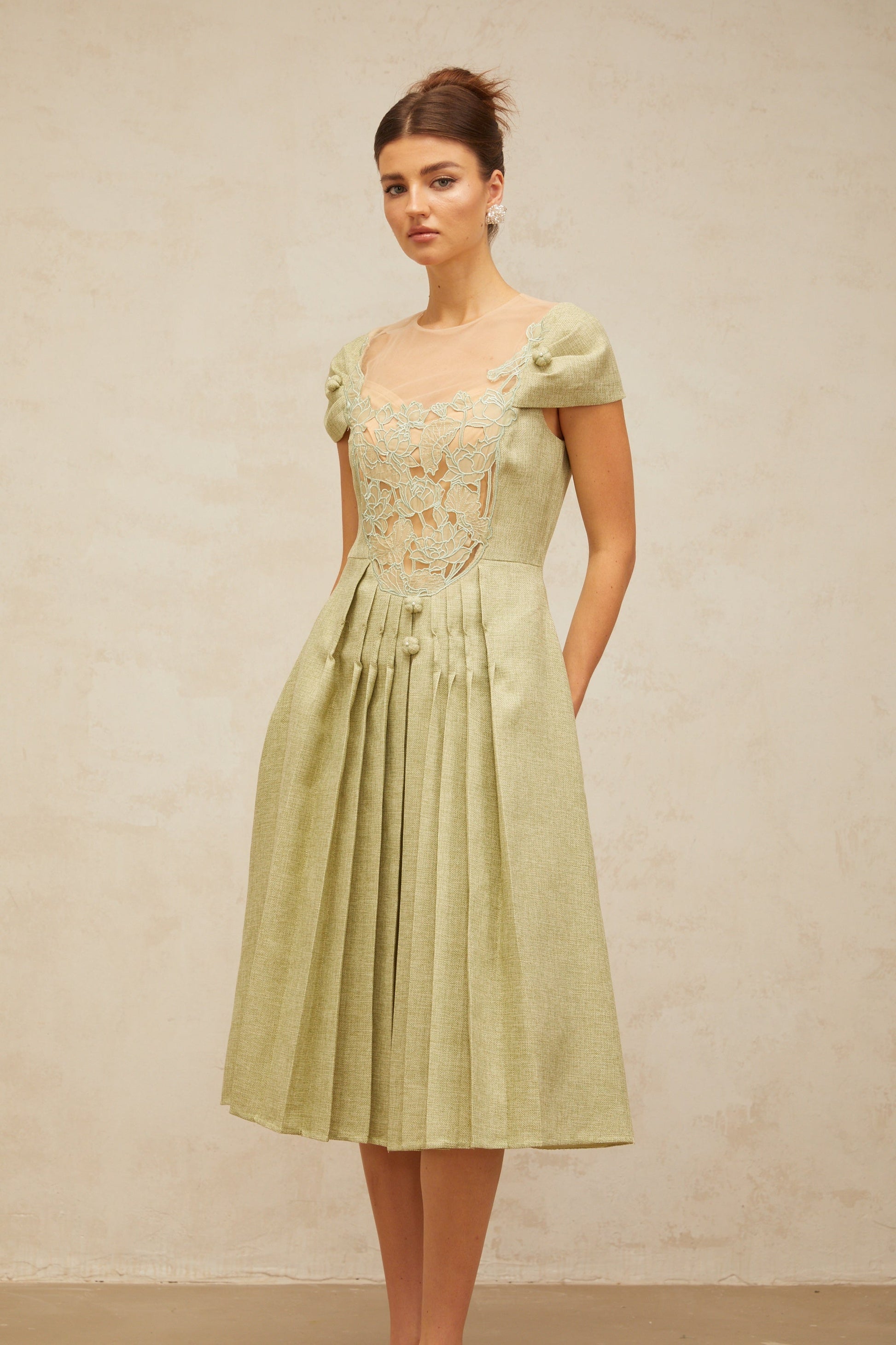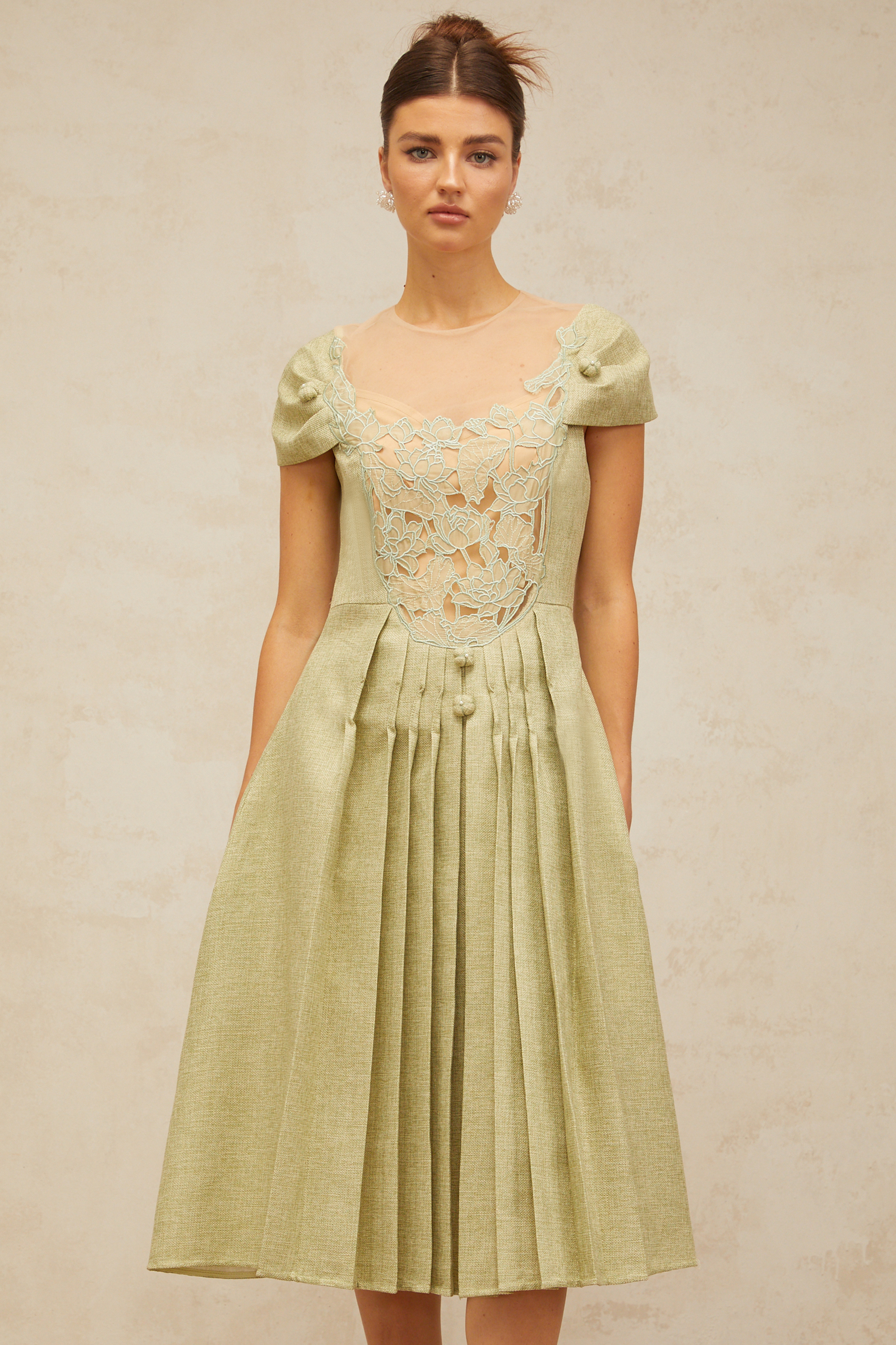 Marianne green flower-motif pleated midi dress