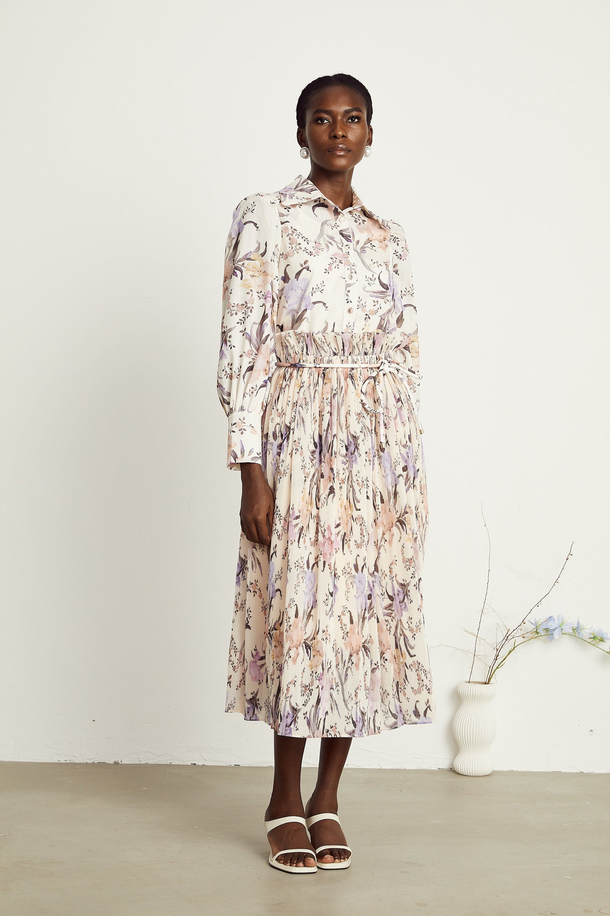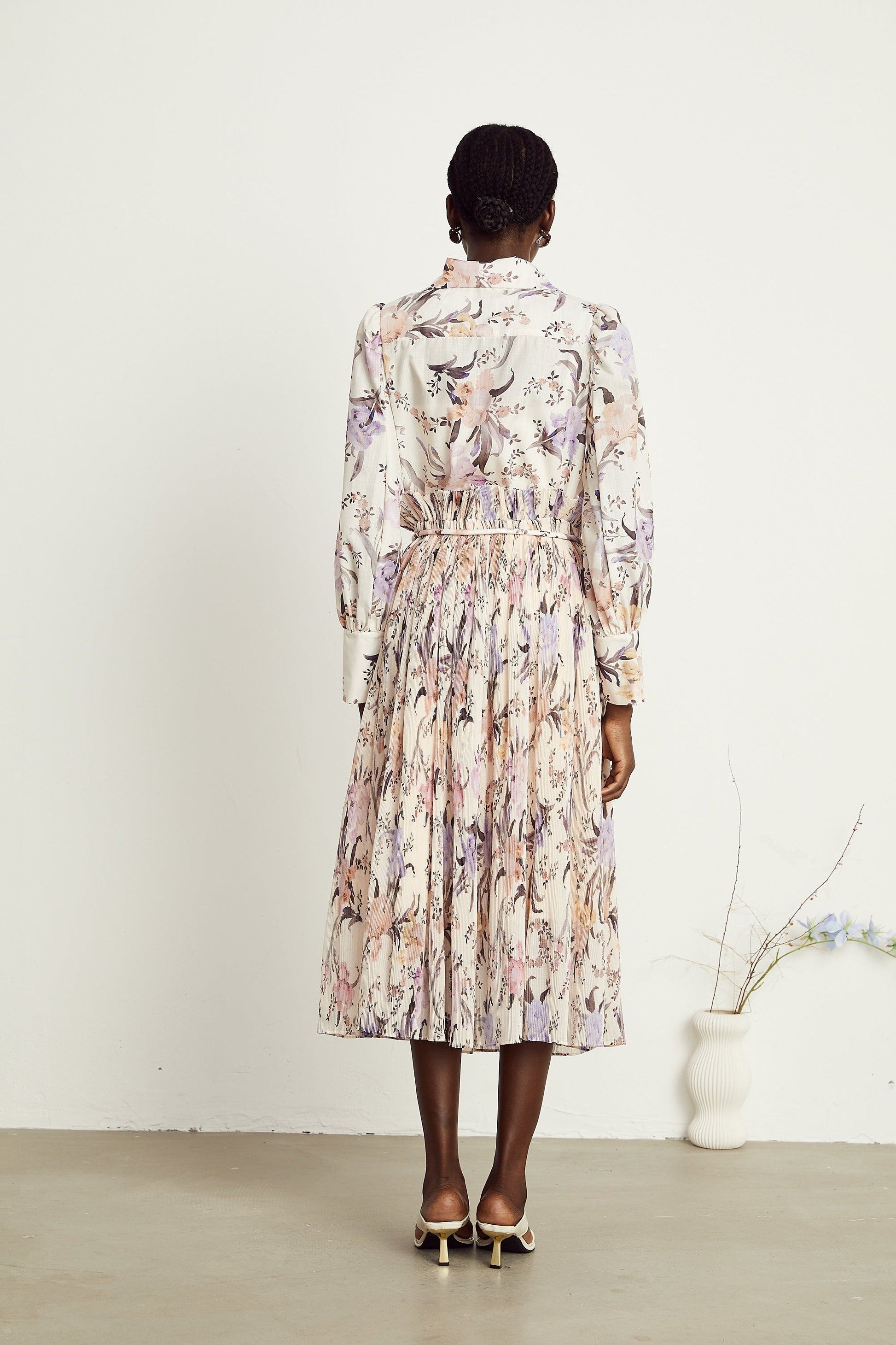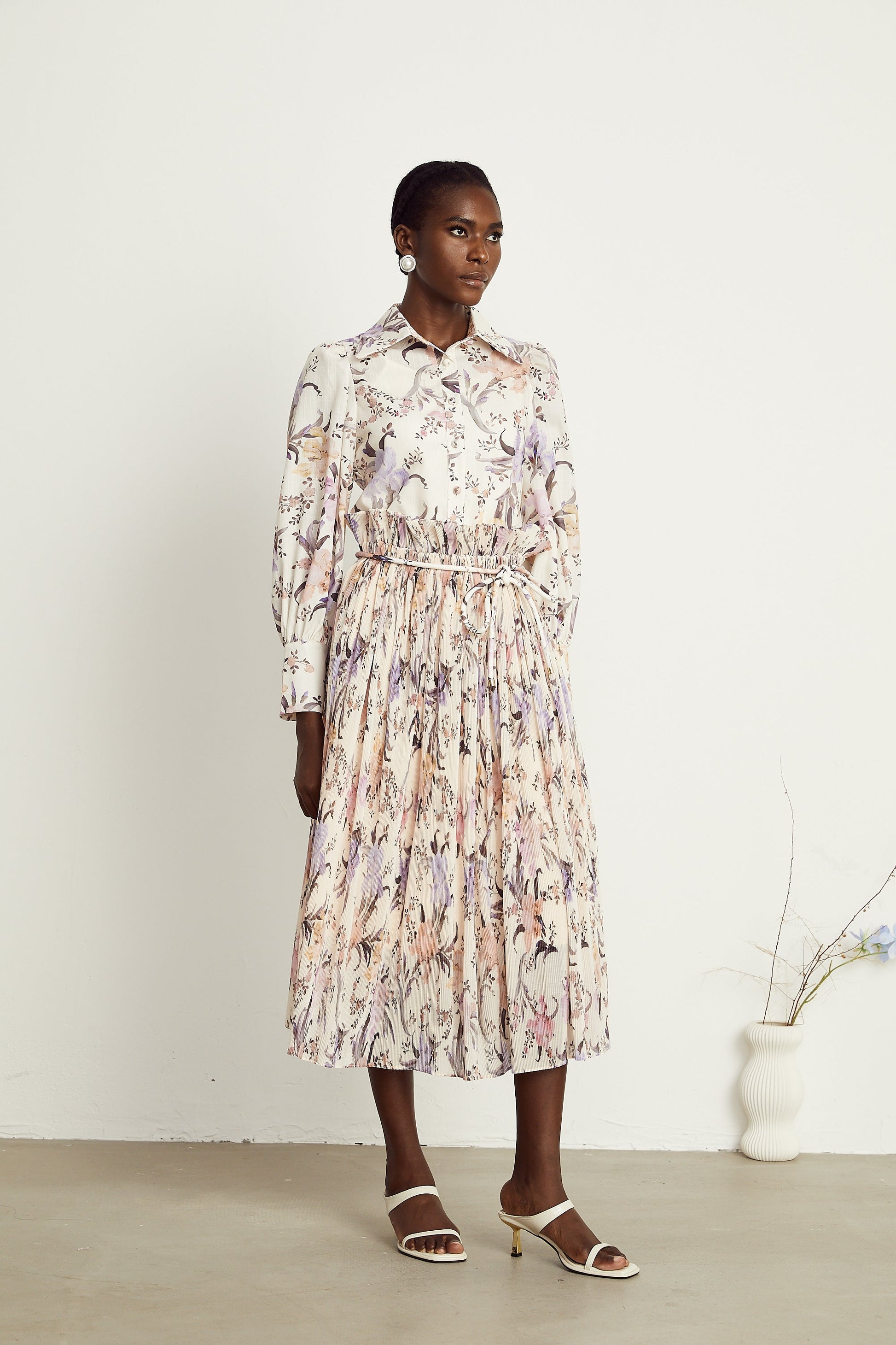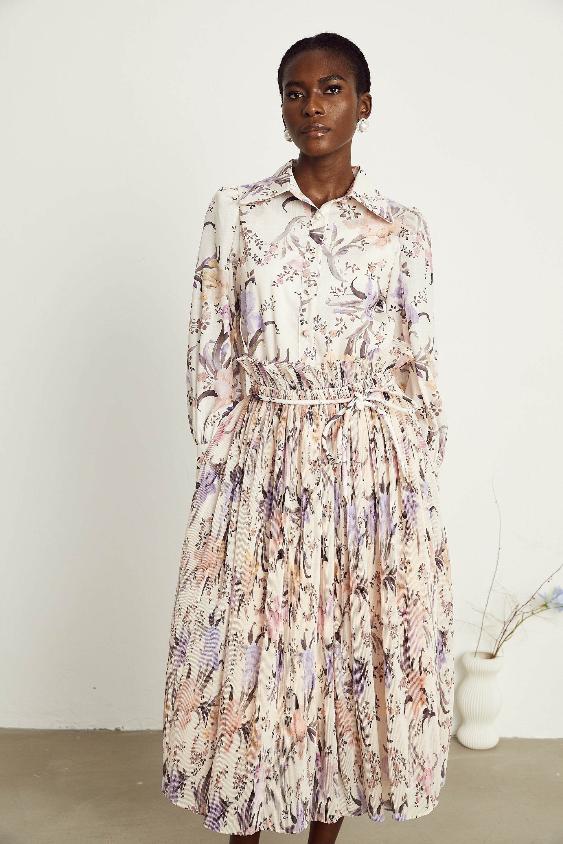 Mathilde floral tied-waist pleated midi dress