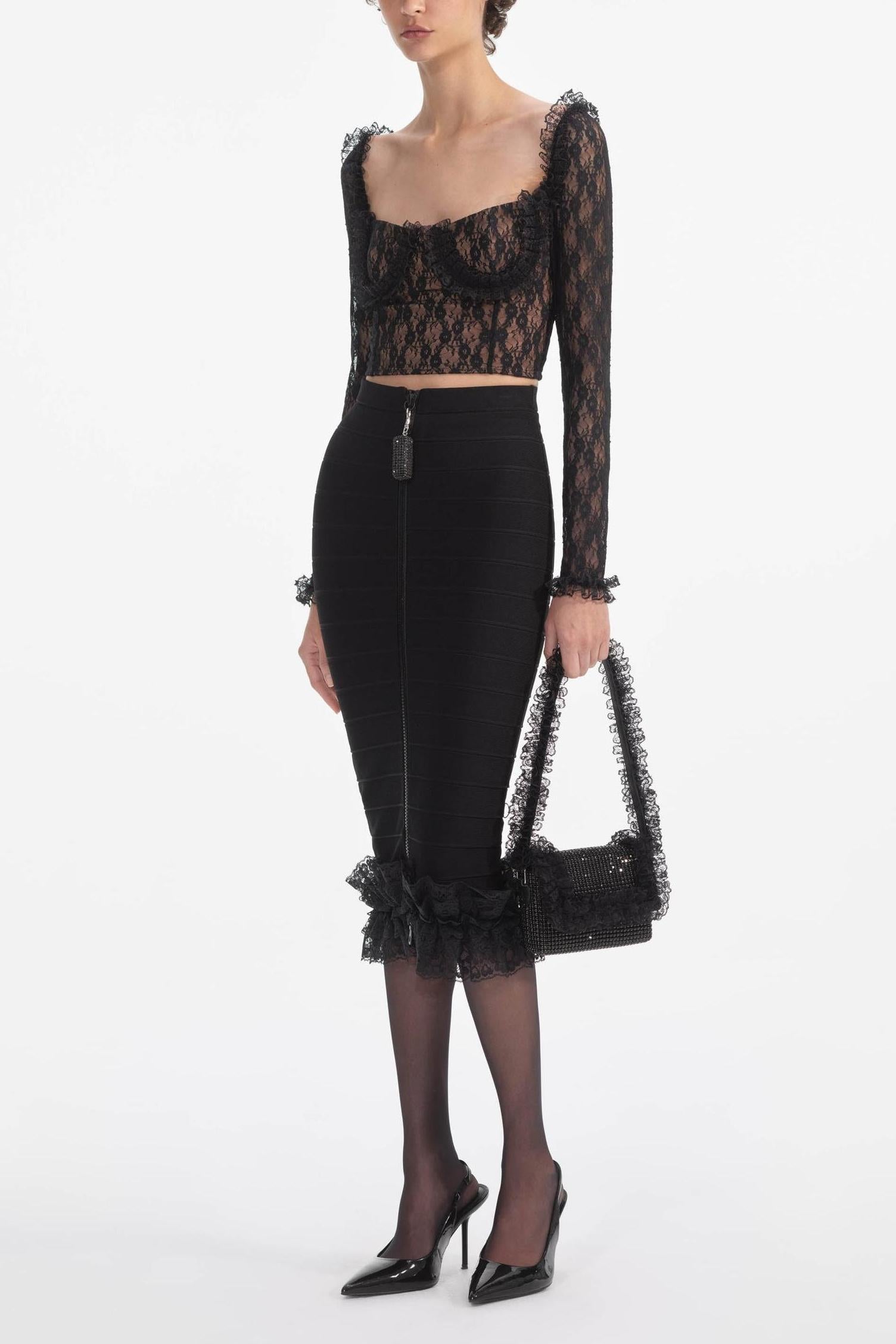 Effortlessly exude elegance and sophistication with our Meghn Lace Ruffle Top. Crafted from luxurious lace, this top features delicate ruffles that add a touch of romance to any outfit. Perfect for a night out or a special occasion, this top will elevate your style and turn heads wherever you go.