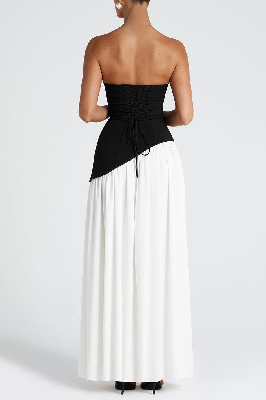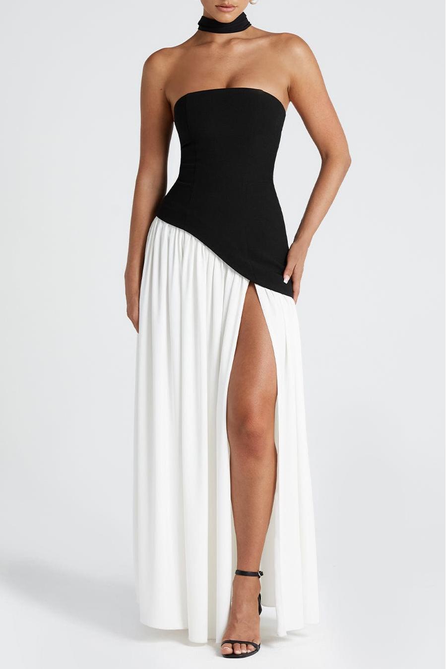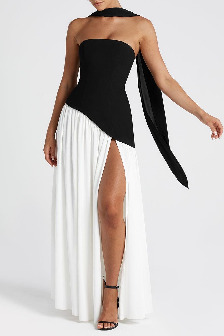 Miloni Strapless Split Maxi Dress - Black/White