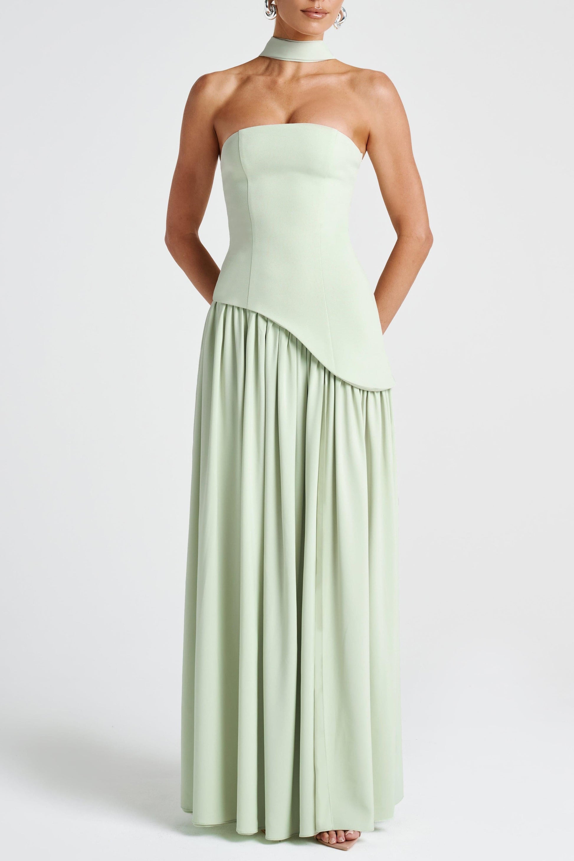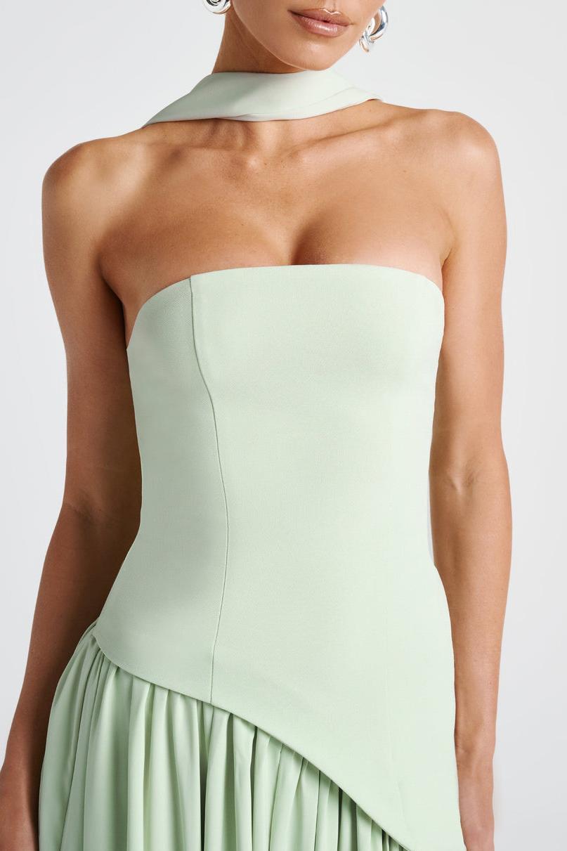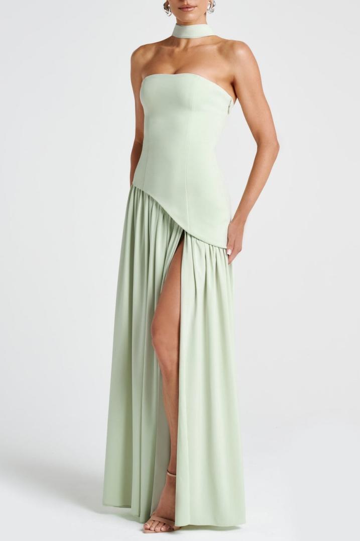 Elevate your eveningwear with the Miloni Strapless Split Maxi Dress, designed for graceful sophistication. This elegant piece features a strapless neckline that accentuates your shoulders, paired with a daring side split that adds movement and allure. Crafted to enhance your silhouette, it offers a refined look perfect for formal events or upscale occasions.