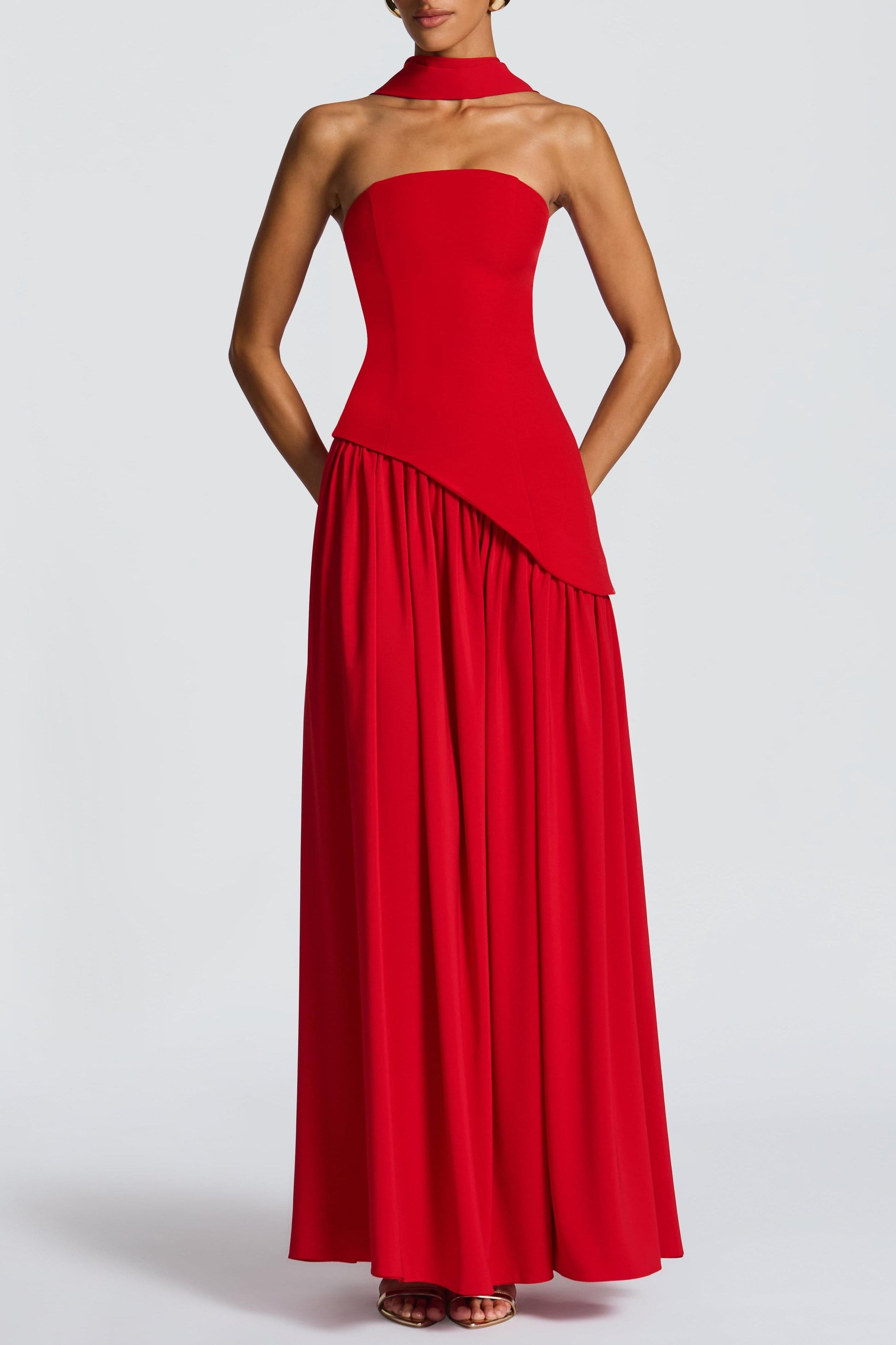 Miloni Strapless Split Maxi Dress - Red