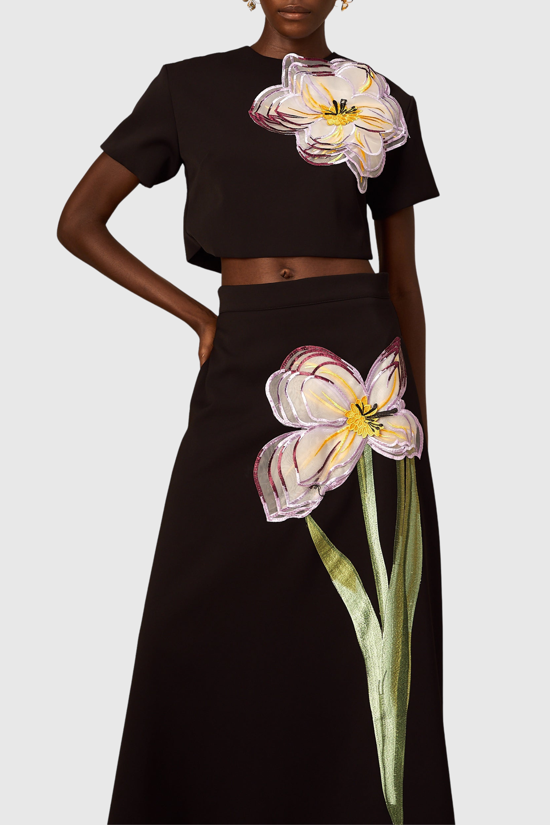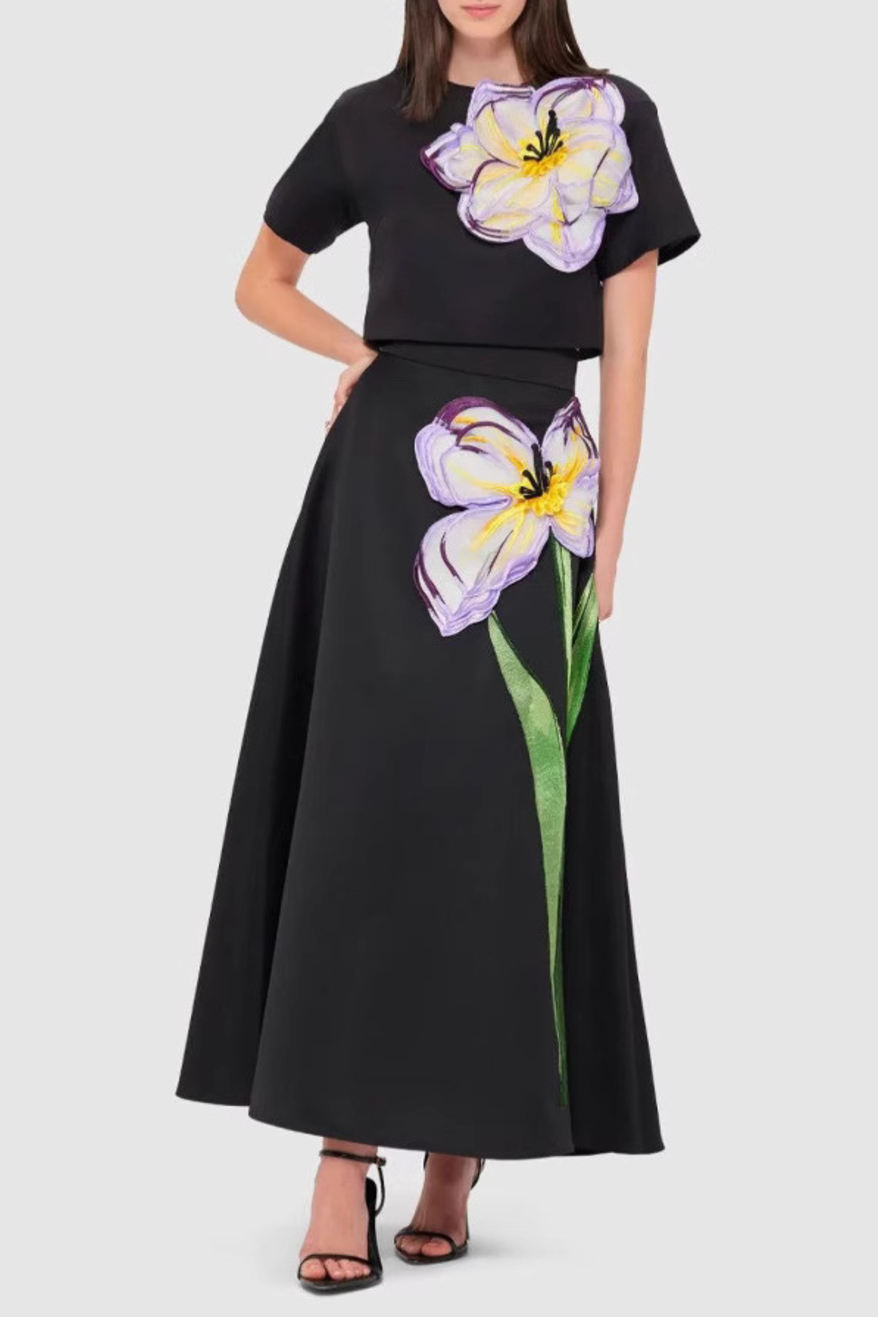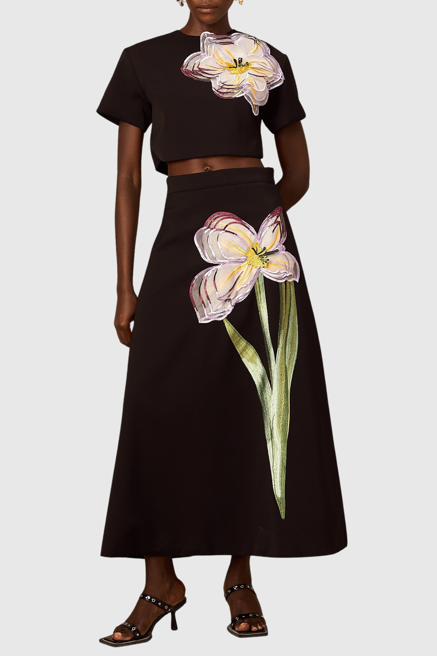 Mimoza Floral Appliqué Two Piece Set - Black