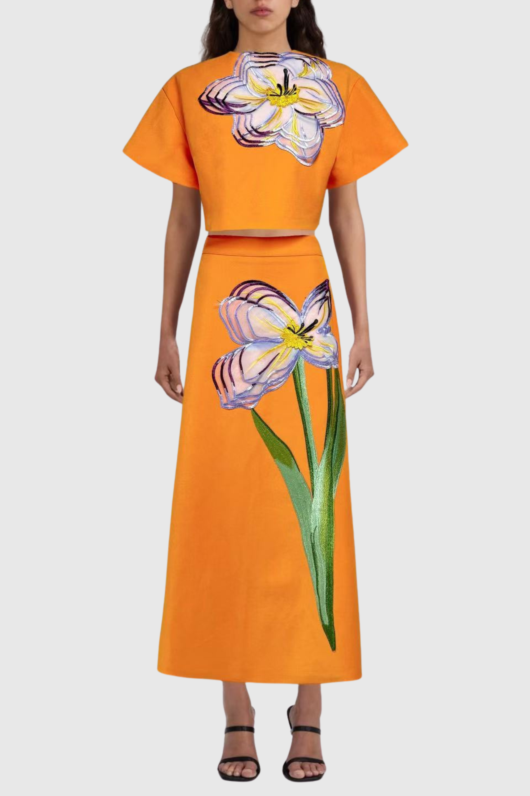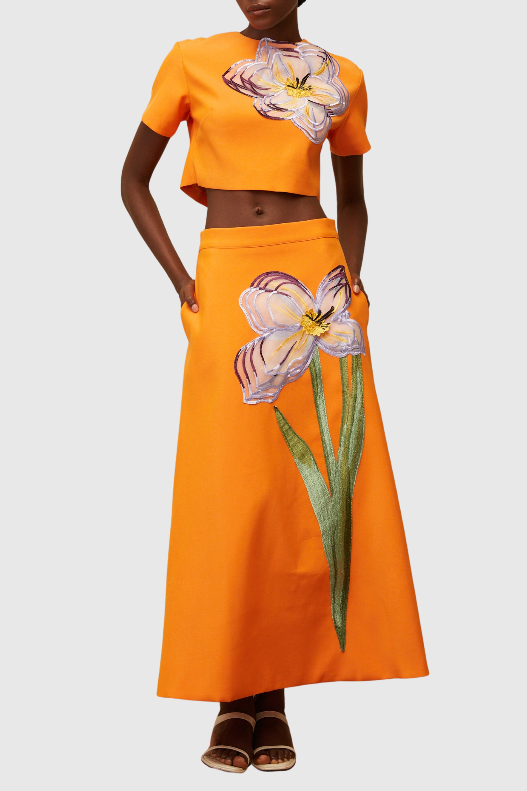 Mimoza Floral Appliqué Two Piece Set - Orange
