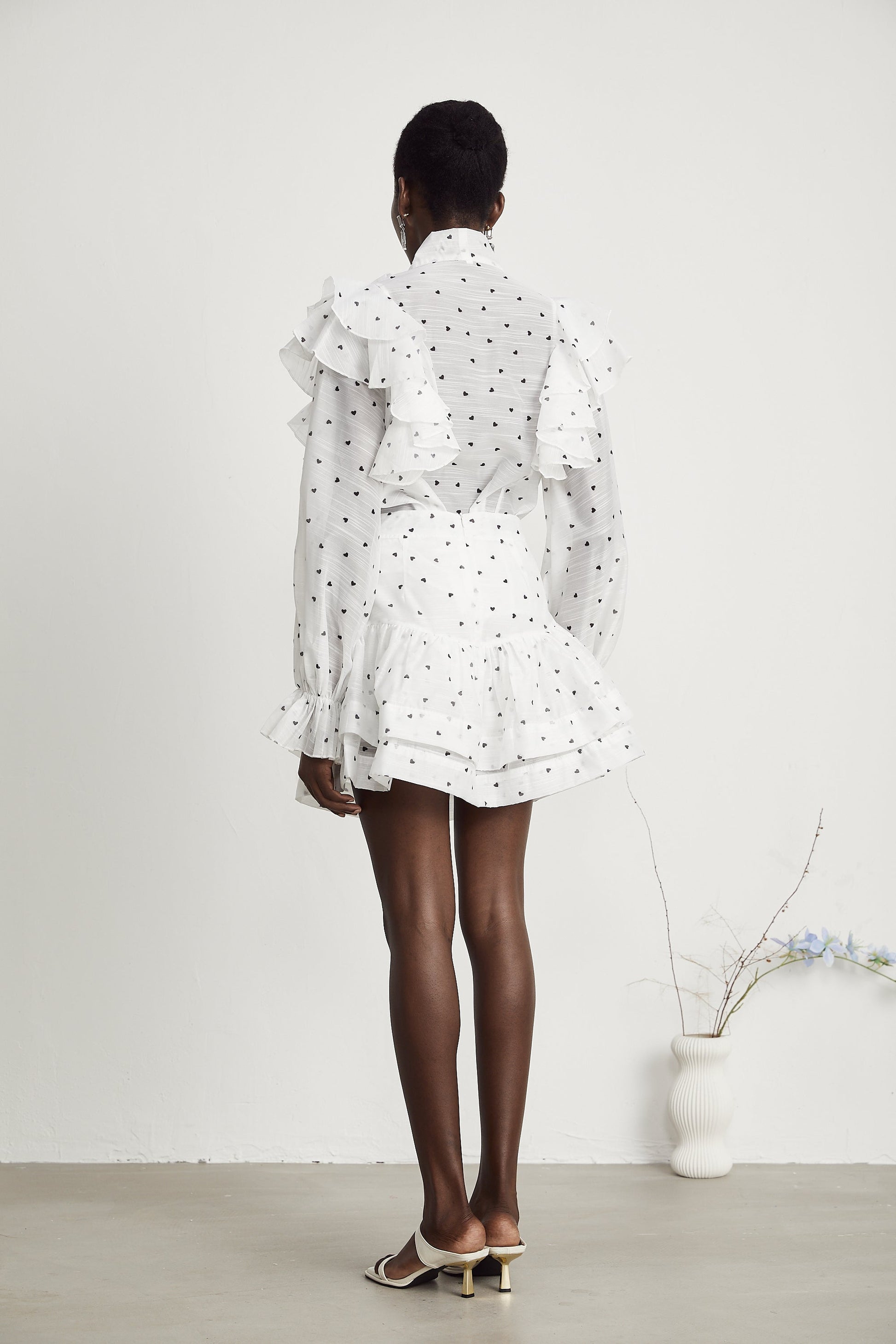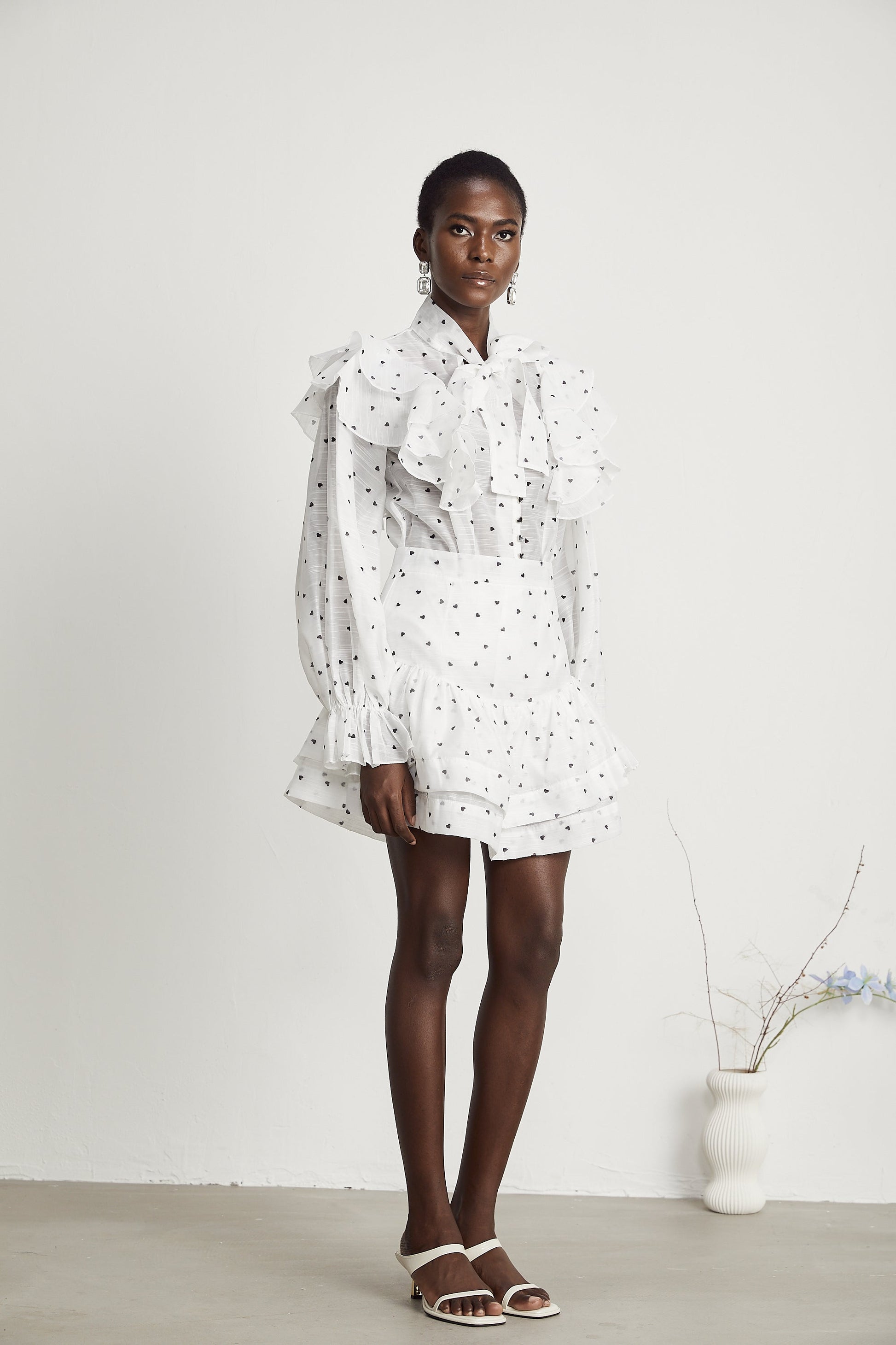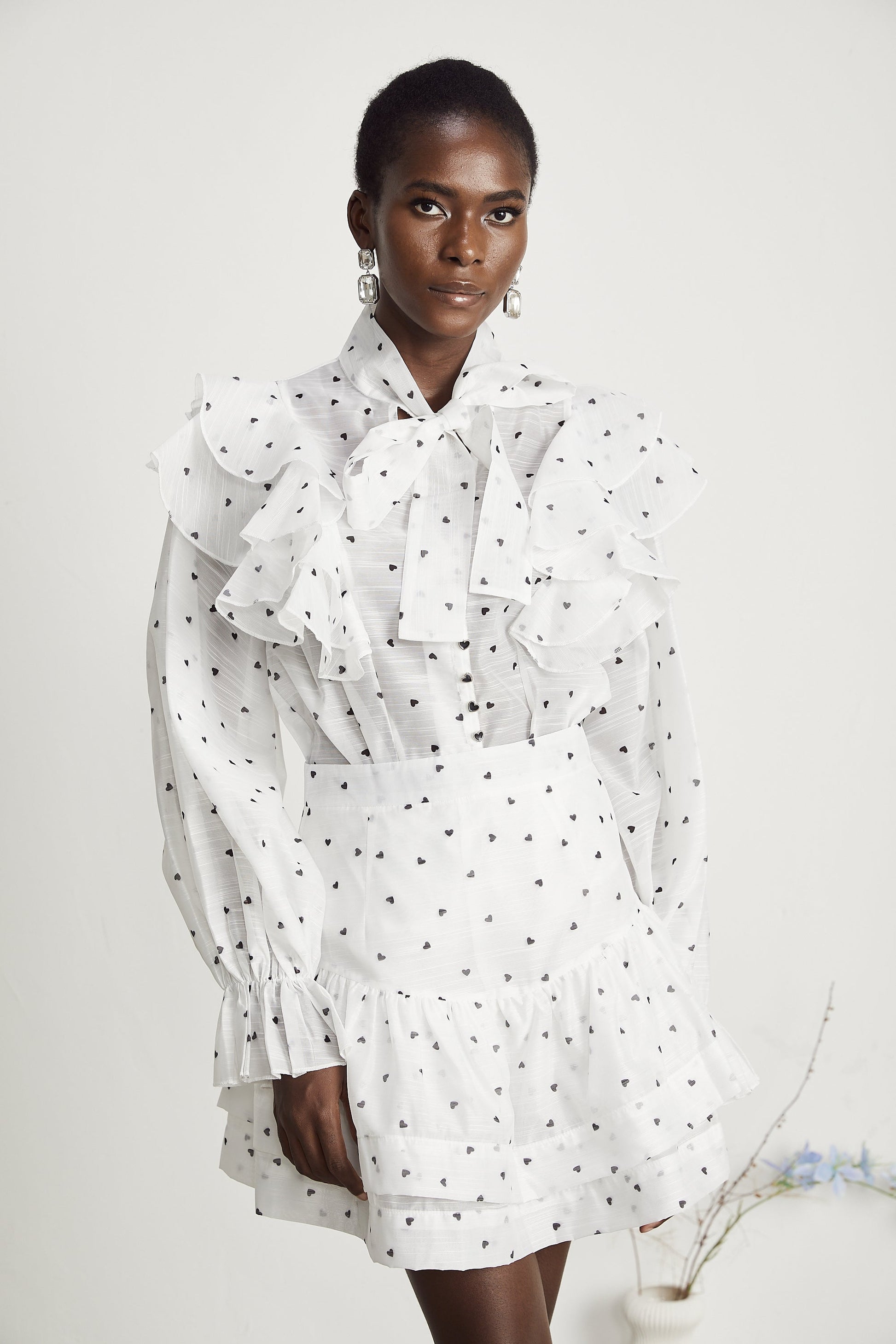 Nadia heart-print blouse & skirt matching set in White