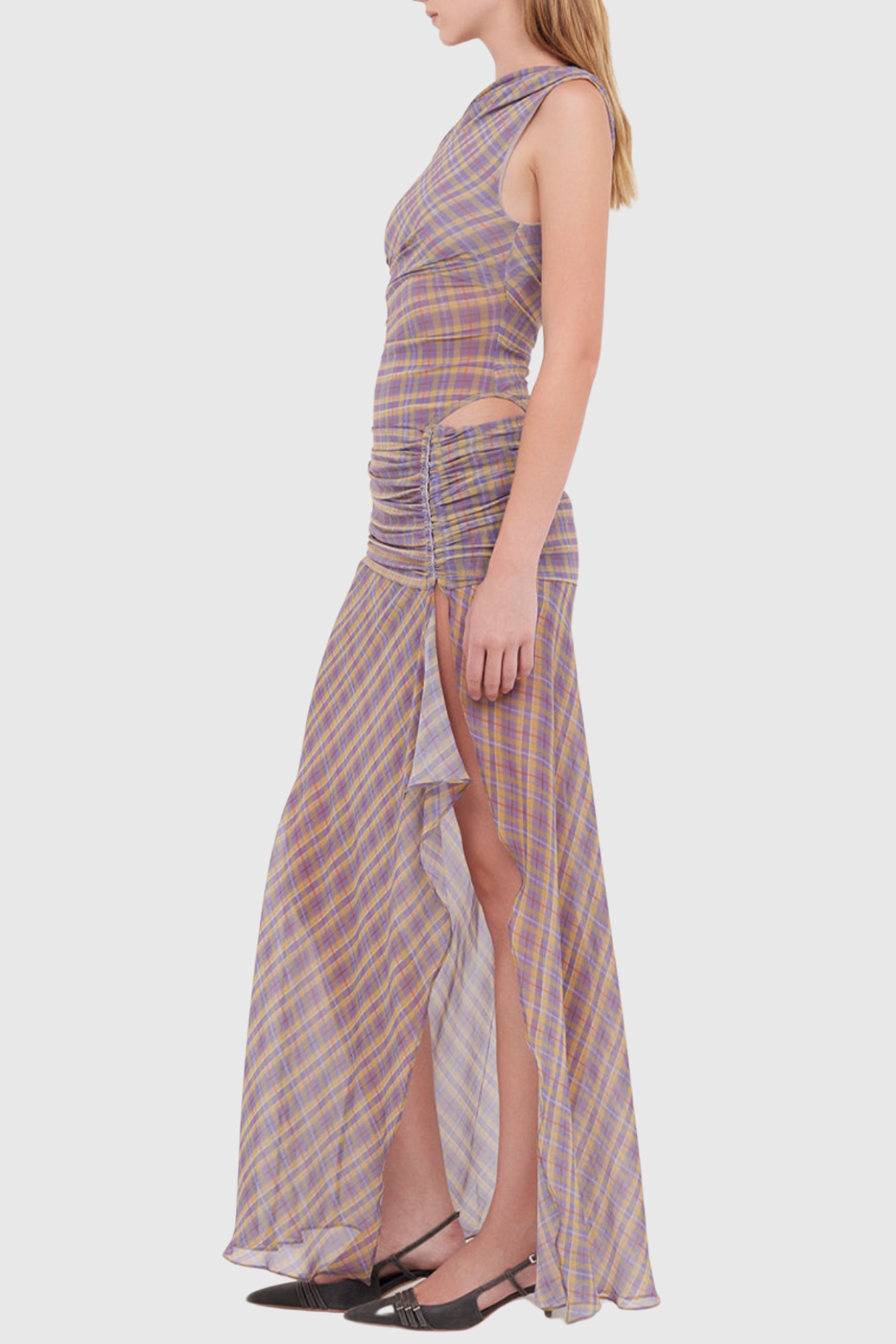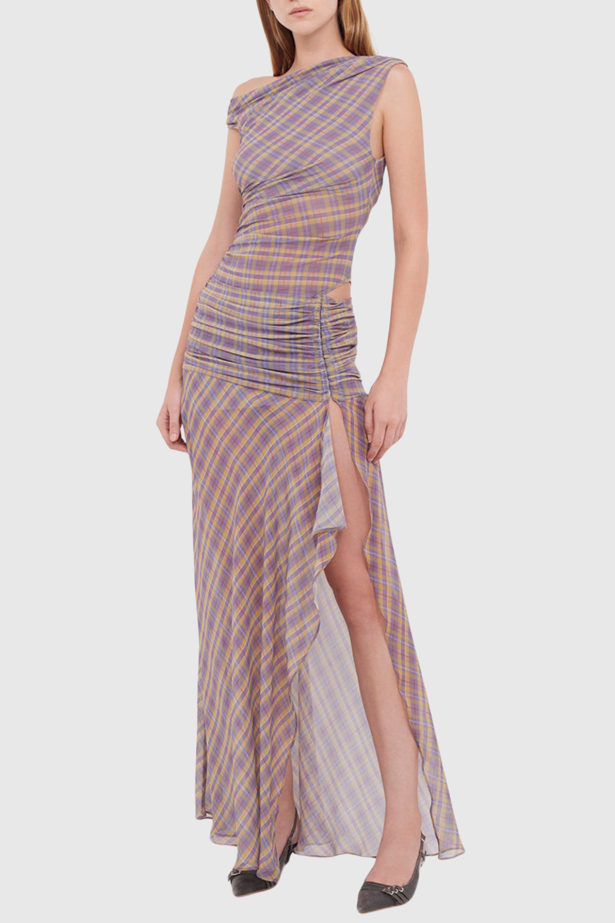 Nashira One Shoulder Asymmetric Ruched Maxi Dress