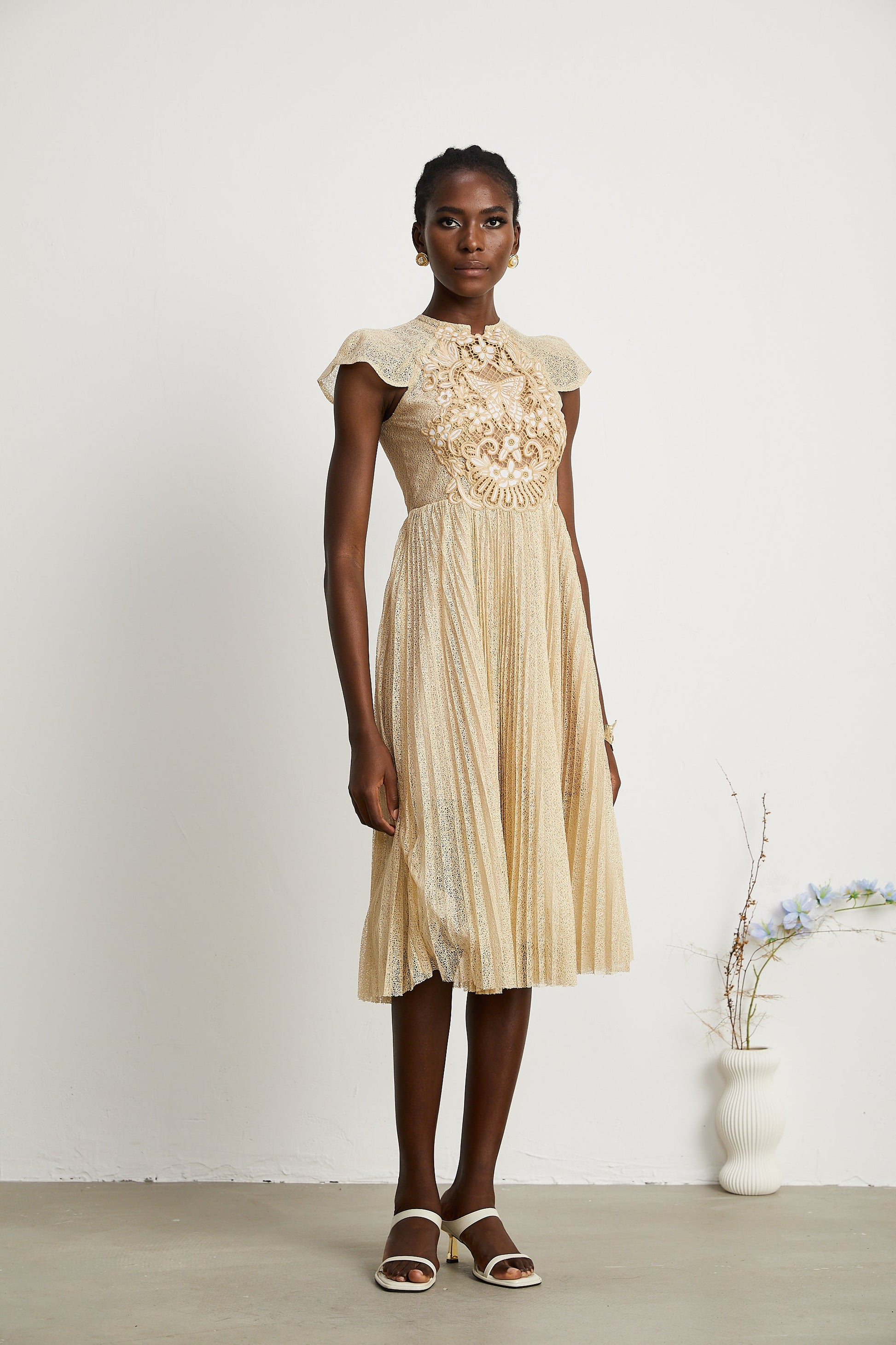 Nerissa embroidered pleated midi dress