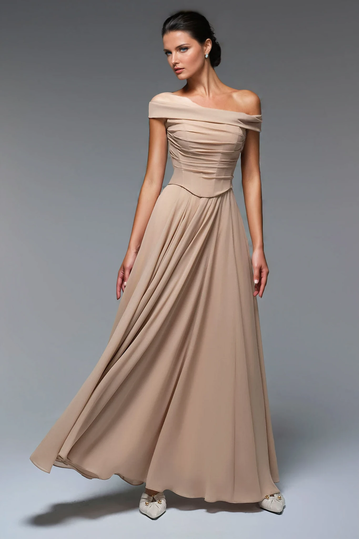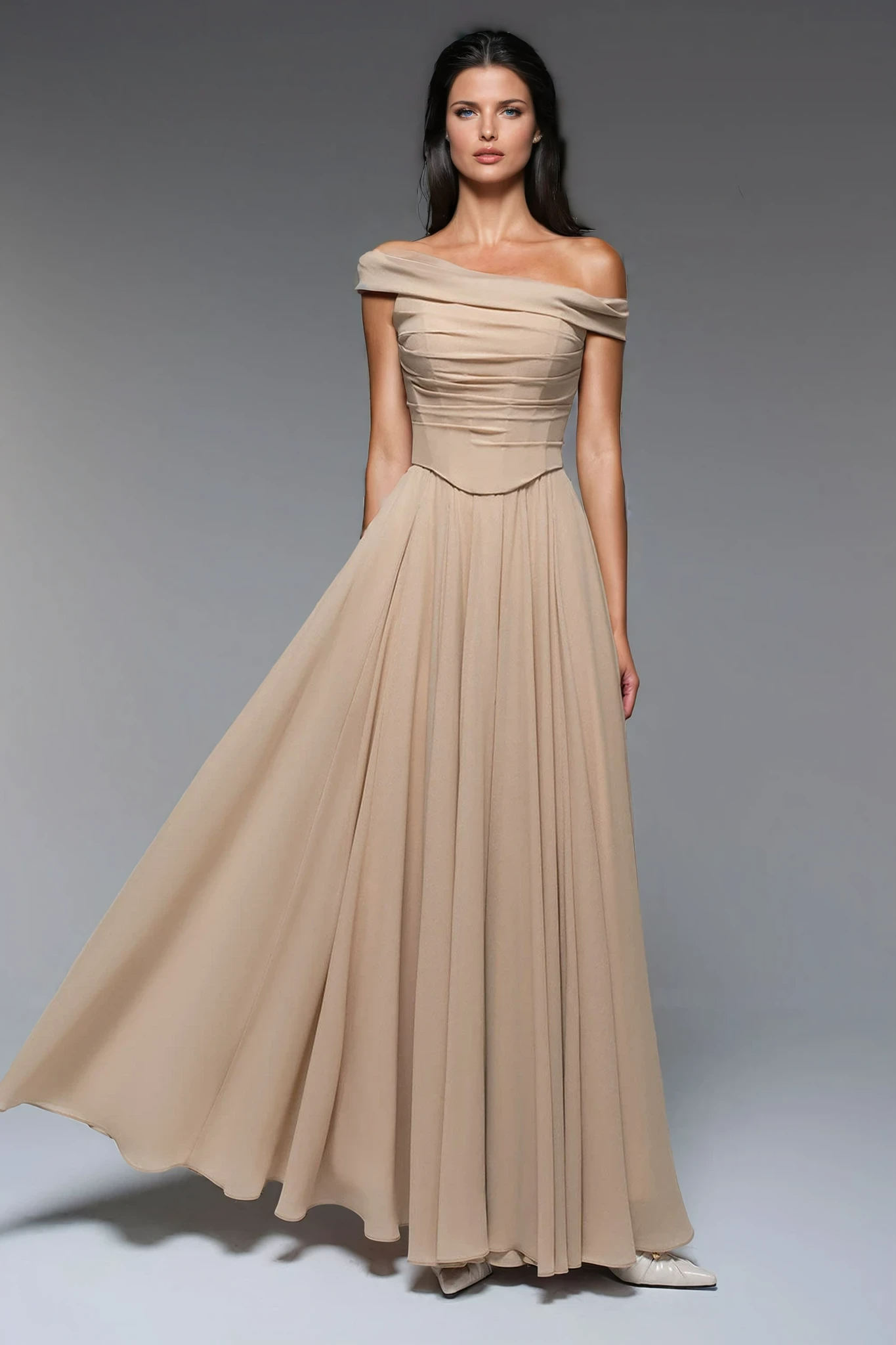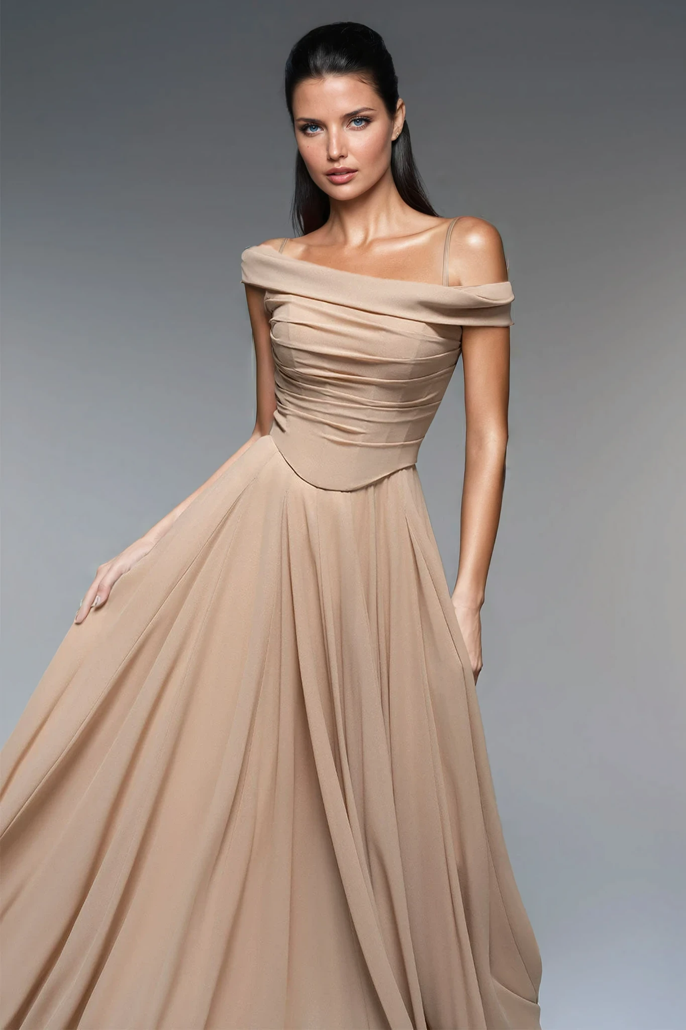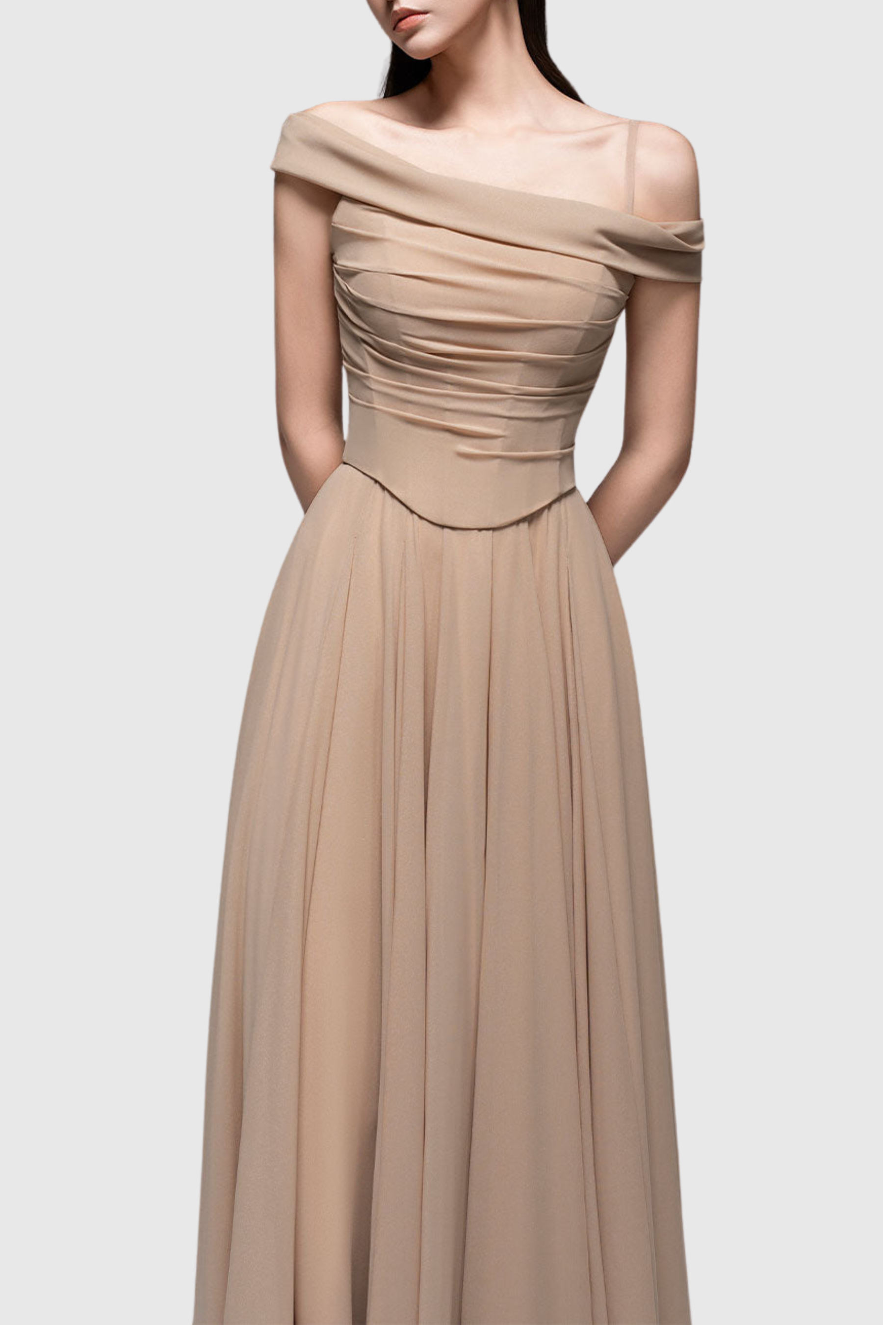 Elevate your elegance with the Nowa Off Shoulder Corset Maxi Dress. This sophisticated design features a flattering off-shoulder neckline and a structured corset bodice that enhances your silhouette. The flowing maxi length adds a graceful touch, perfect for formal occasions or evening events. Crafted to combine style and comfort, this dress ensures you make a refined statement wherever you go.