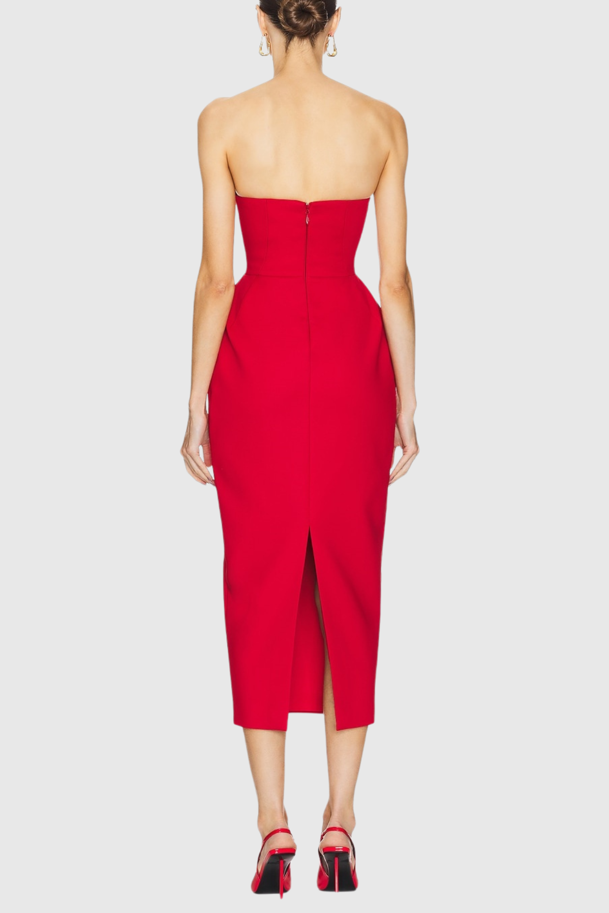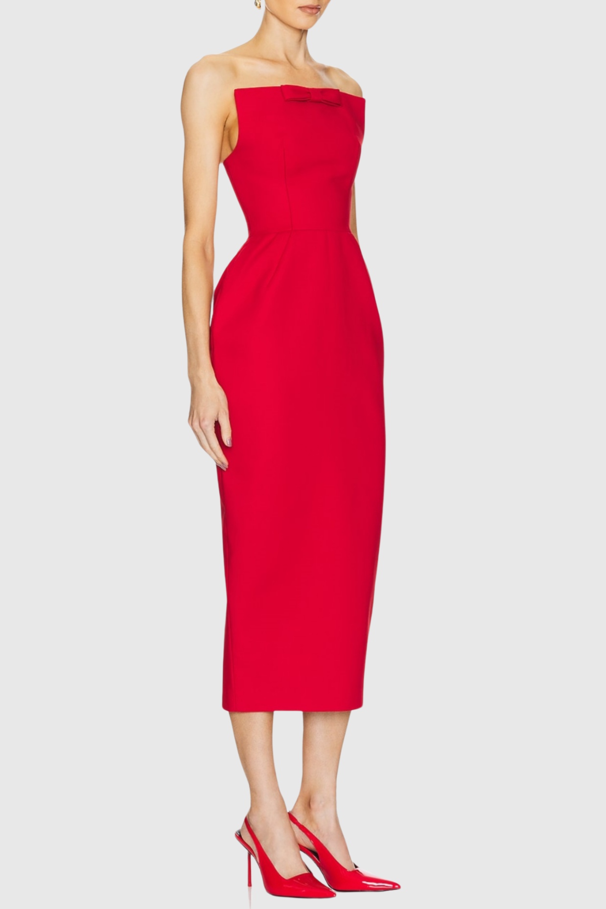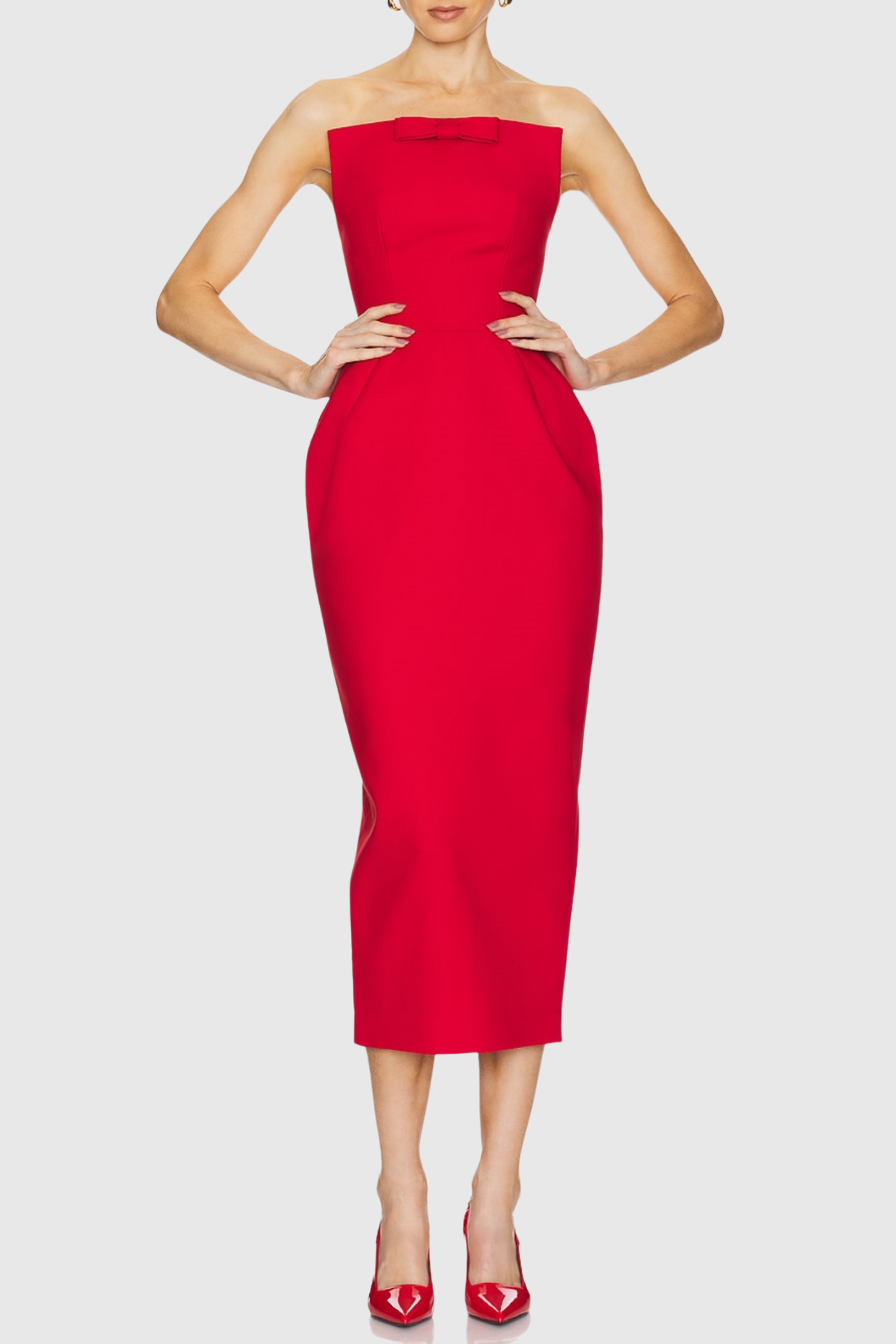 Elevate your wardrobe with the Obozh Bow Strapless Maxi Dress in sleek red. This elegant dress features a stunning bow detail and a flattering strapless design that exudes luxury and sophistication. Perfect for special occasions or a night out, this dress will make you feel confident and stylish.