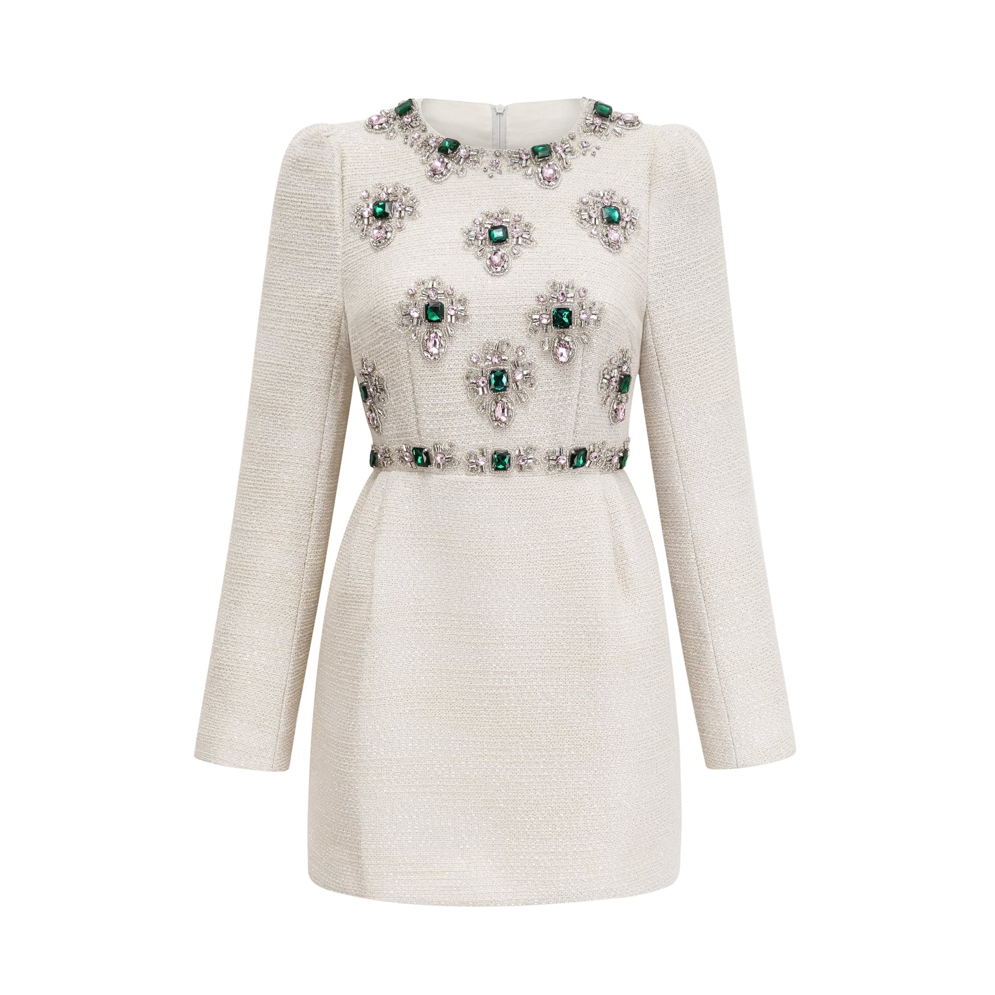 Pauline white tweed bead-embellished mini dress