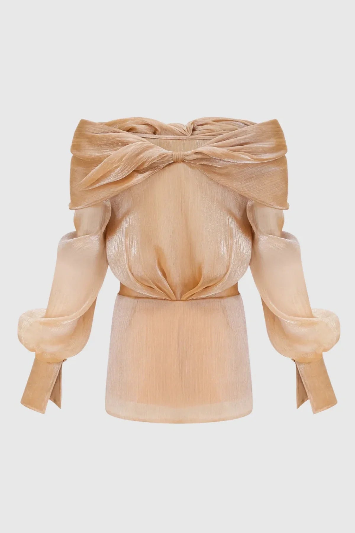 Elevate your evening look with our Rahar Gold Off Shoulder Rhinestone Embellished Mini Dress. The off shoulder design and rhinestone embellishments add a touch of luxury to this mini dress. Perfect for a night out or special occasion, this dress will make you feel elegant and glamorous.
