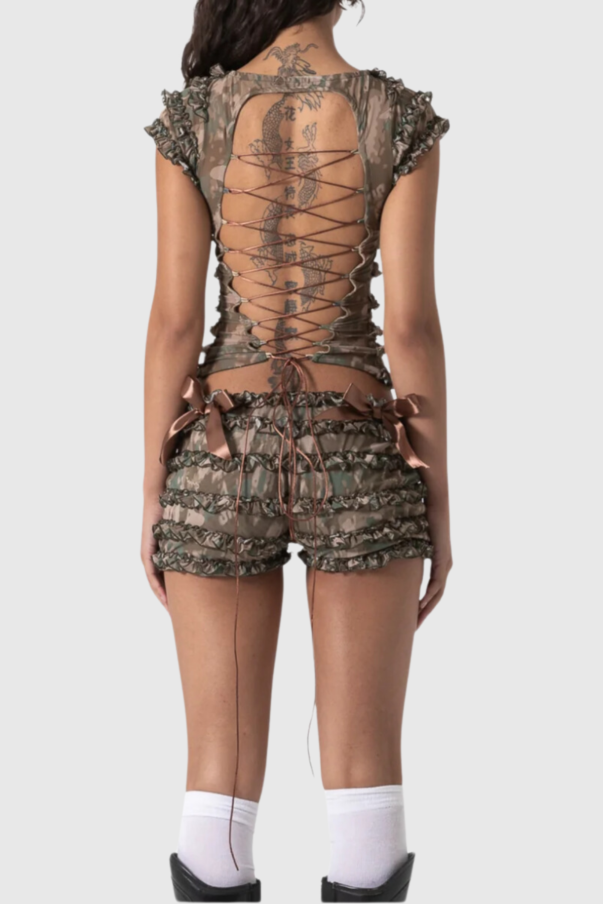Get ready to slay in this show-stopping Raven Ruffle Backless Lace Up Set in Green! The backless design and lace-up detailing add a touch of sass, while the ruffle accents give a flirty and feminine vibe. Perfect for a night out or a special occasion.