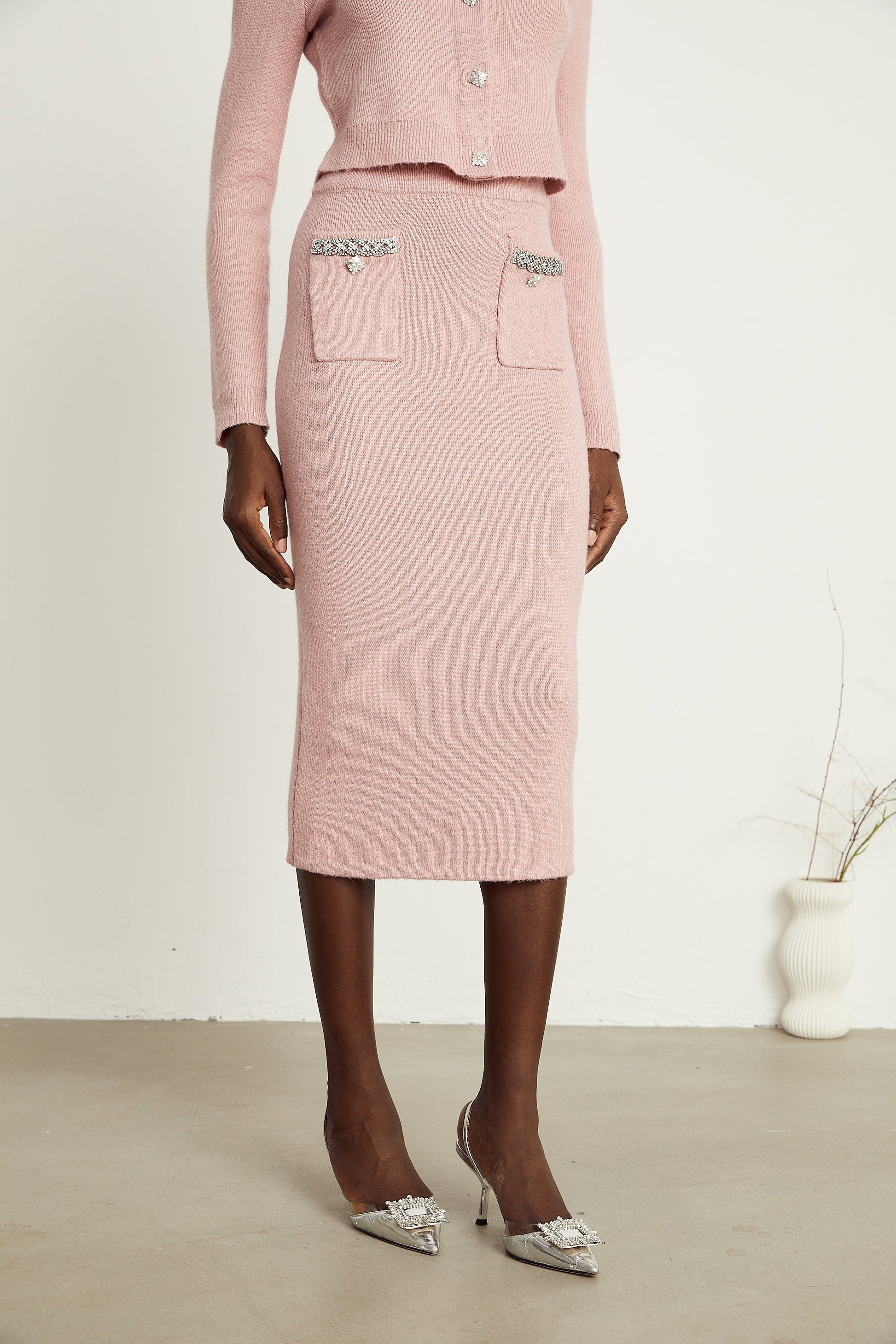 Renée pink embellished jacket & skirt matching set