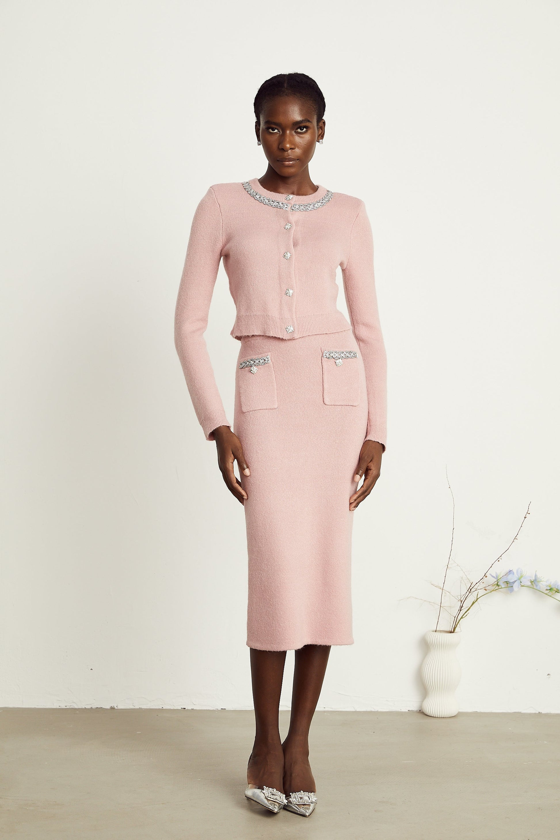 Renée pink embellished jacket & skirt matching set