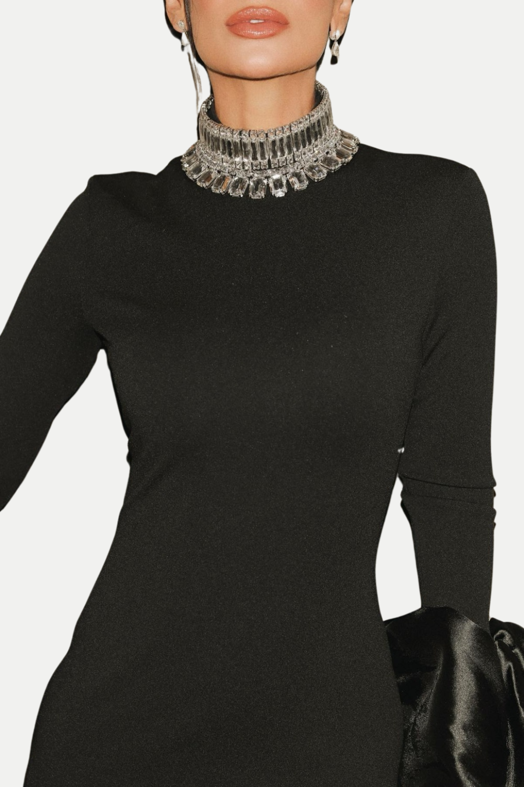 The Rhada Diamante Maxi Bandage Dress is a stunning and sophisticated dress that features a beautiful rhinestone detailing. Made with high-quality bandage fabric, this dress is form-fitting and flattering, making you feel confident and elegant. Perfect for special occasions or a night out, this dress is sure to turn heads and make you shine.