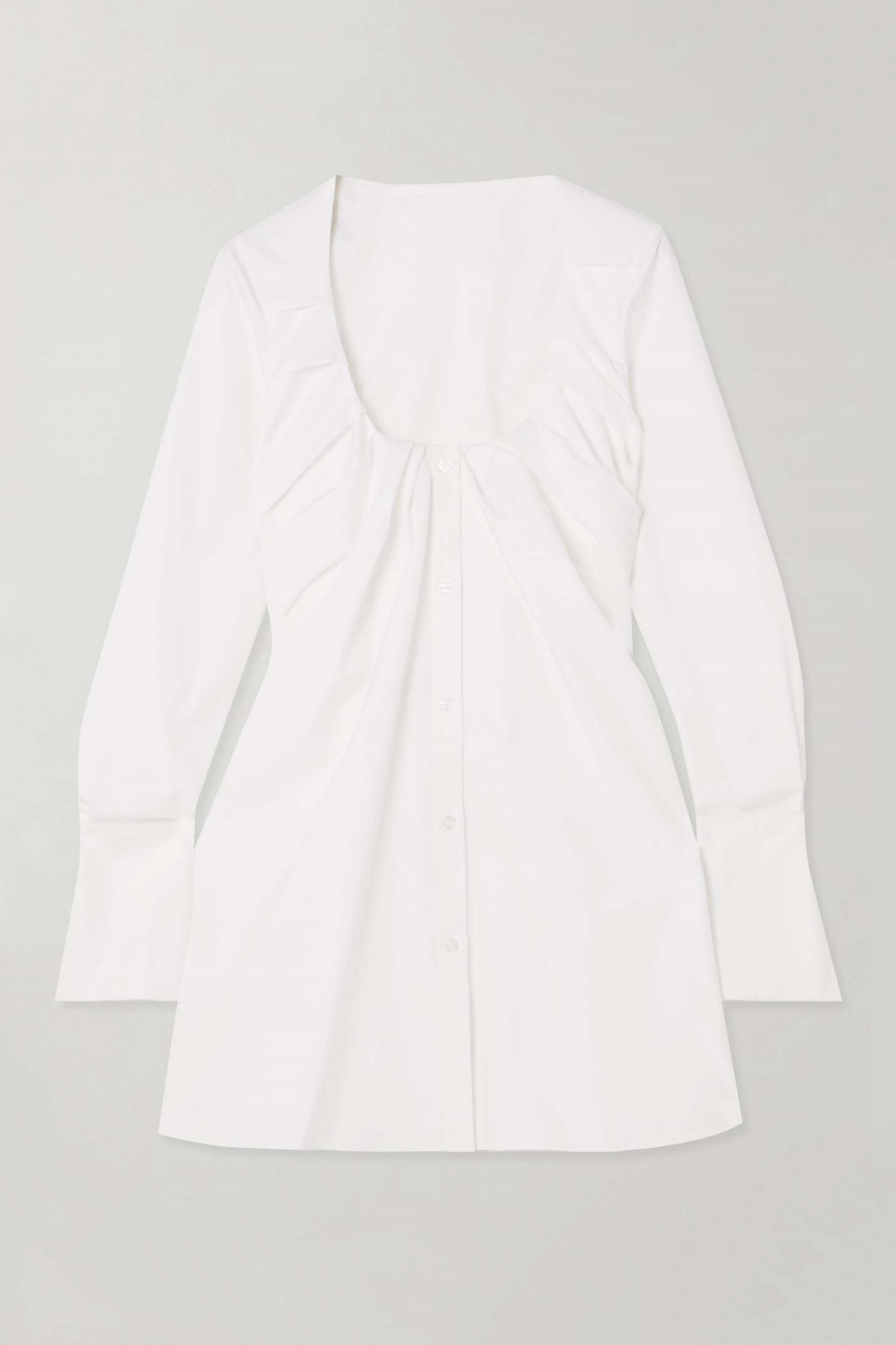 Elevate your wardrobe with the luxurious Rolia Crew Neck Ruched Mini Shirtdress. Its sophisticated design features ruched detailing and a stylish crew neck, creating a look that is both elegant and exclusive. Dress it up or down for any occasion and experience the premium comfort and style of this must-have piece.