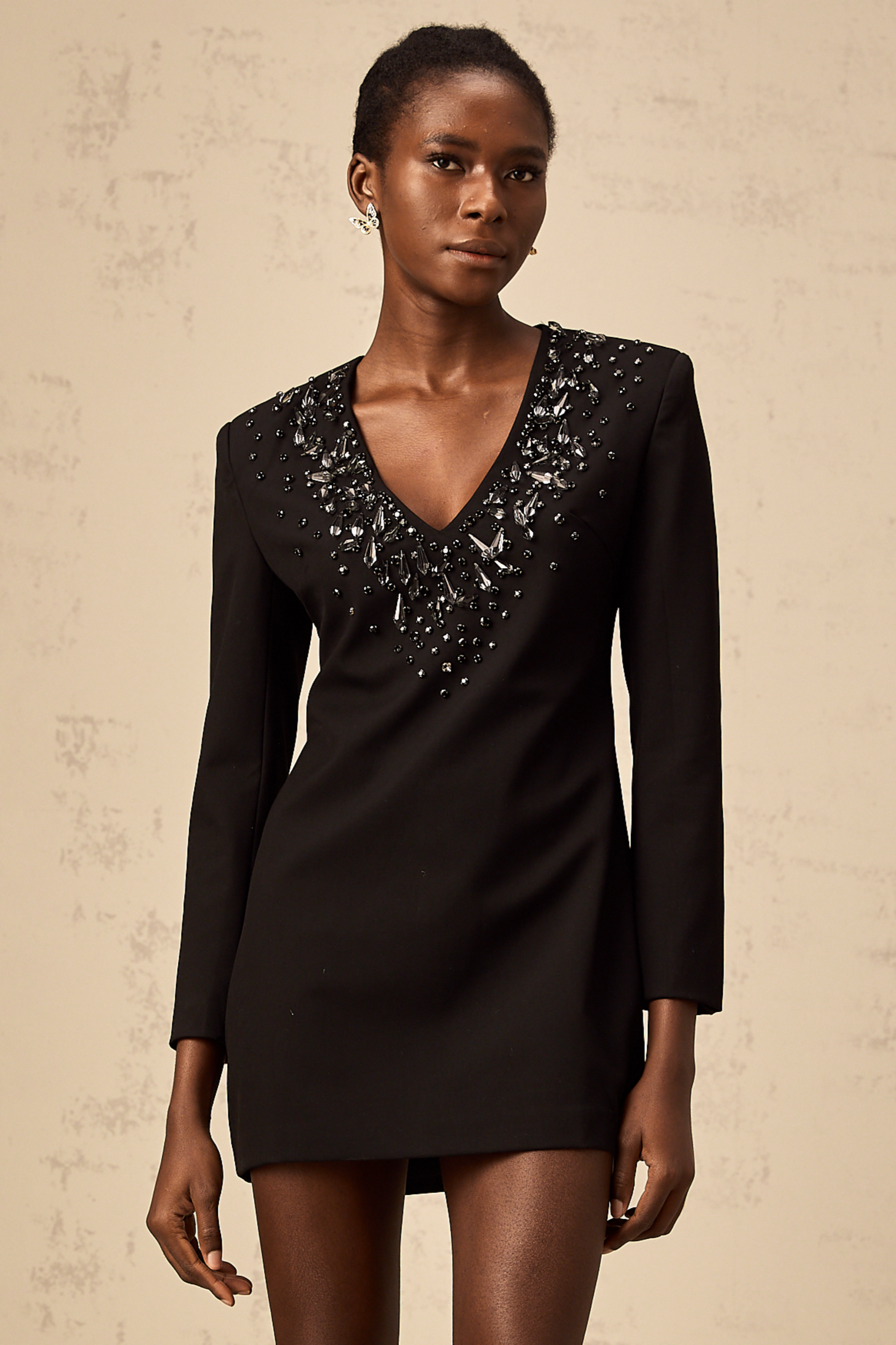 Sandrine black plunging V-neck crystal-embellished mini dress