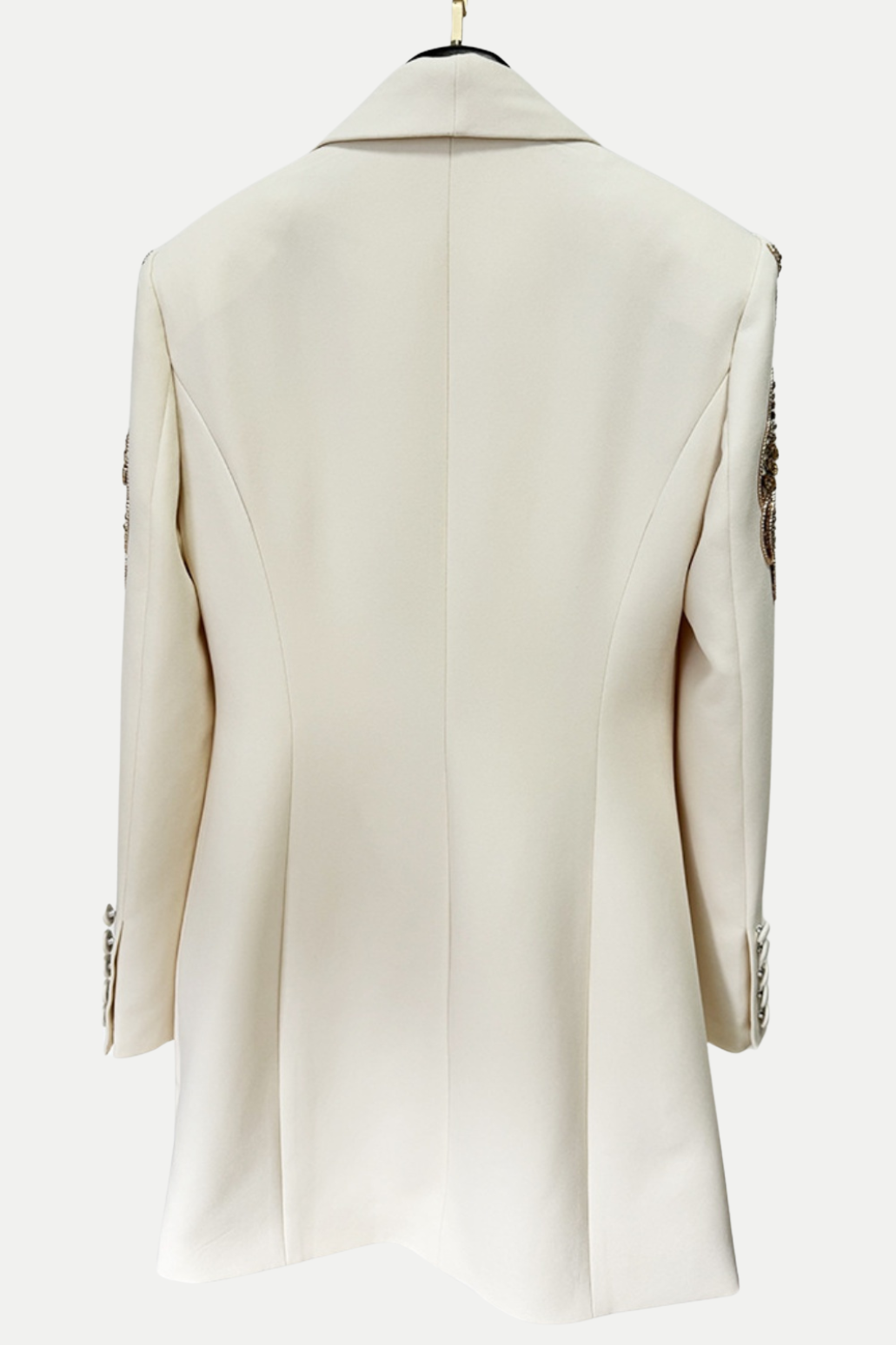 Indulge in the luxurious elegance of the Serepta Rhinestone Ruched Blazer Dress. With stunning rhinestone detailing and a ruched design, this blazer dress will elevate your evening attire to new heights. Exude sophistication and exclusivity in this must-have piece.