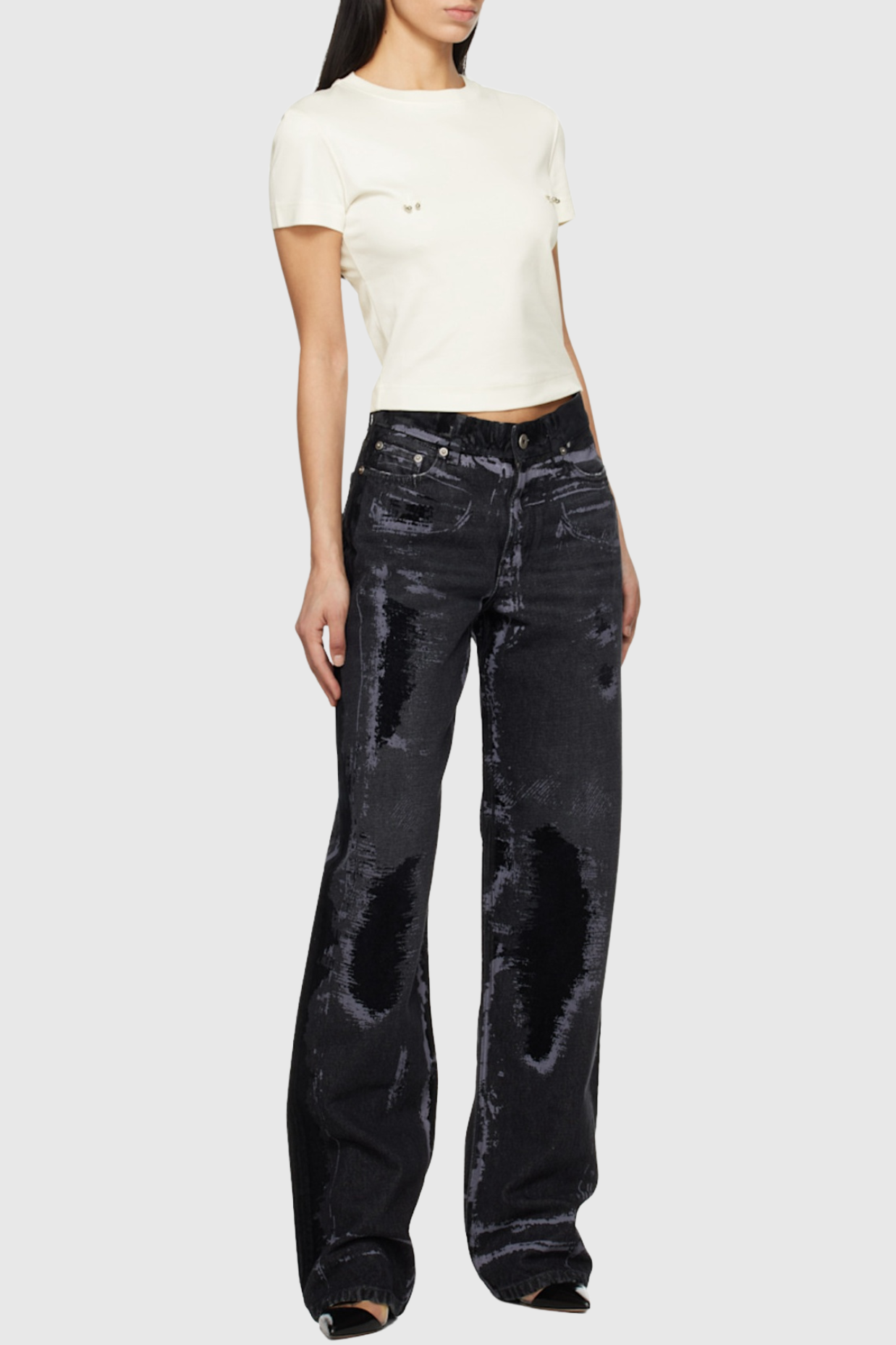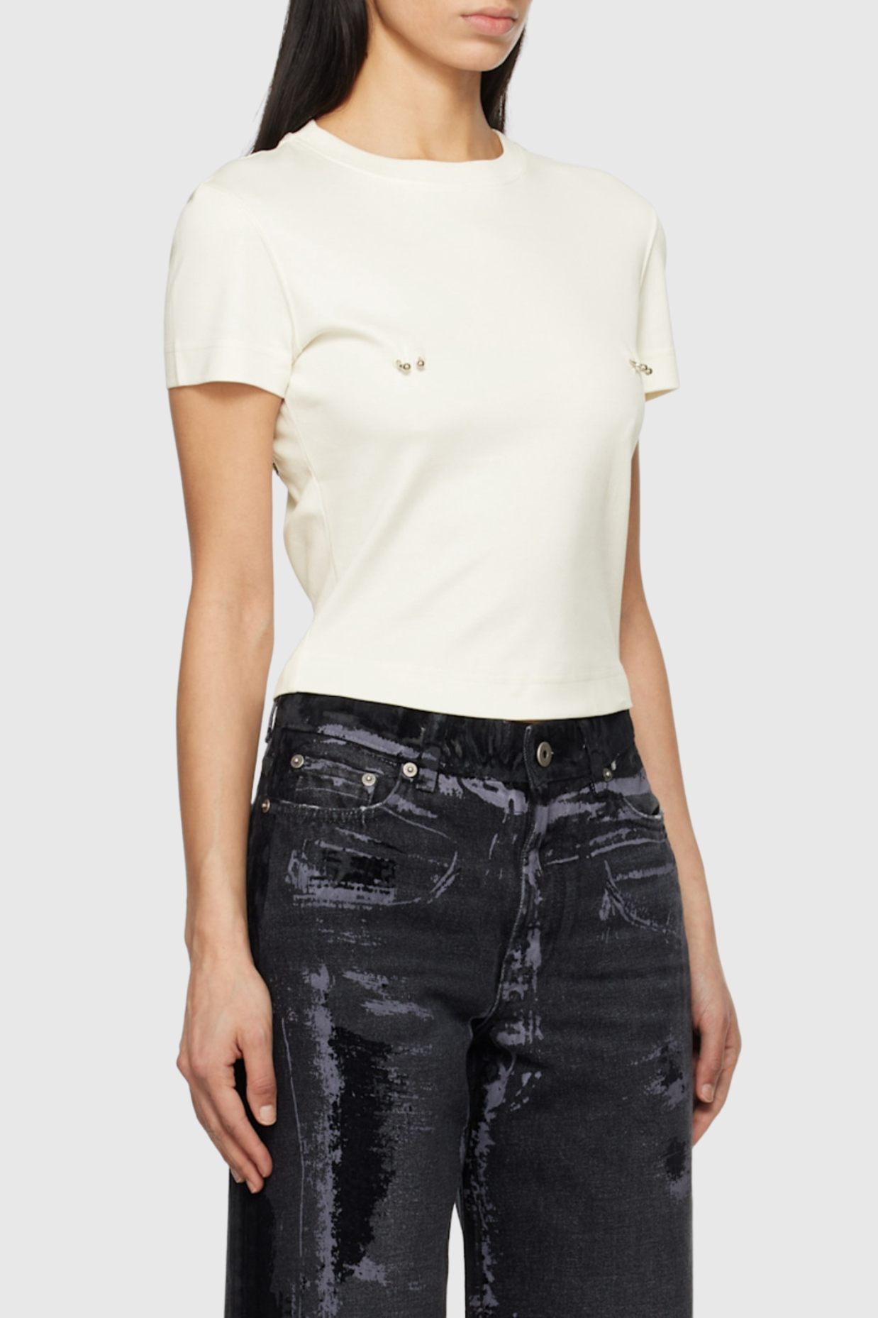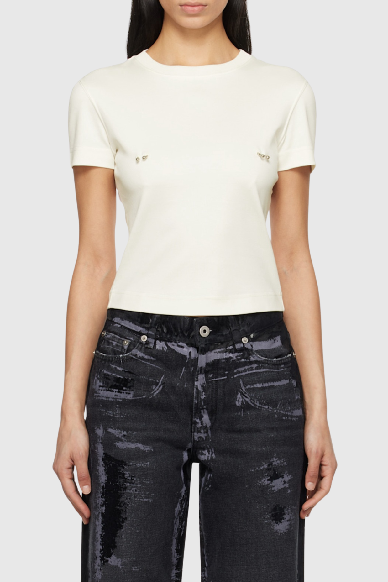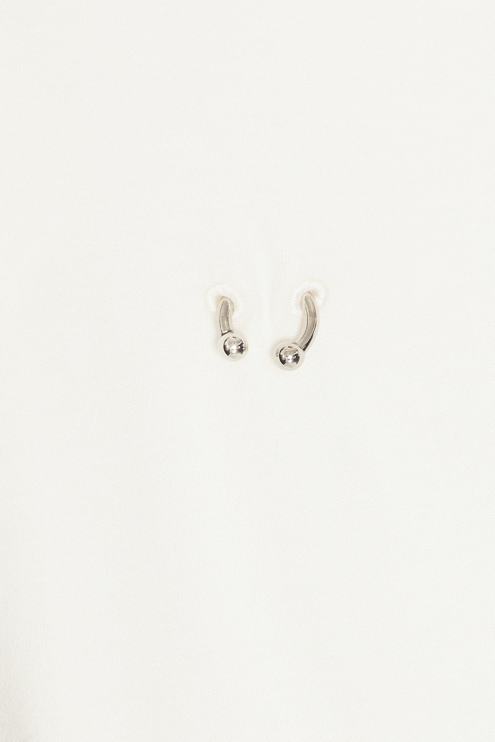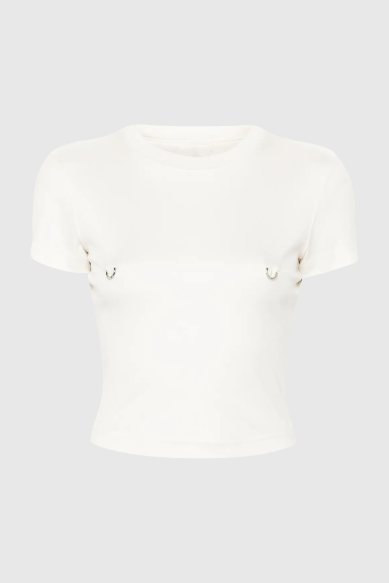 Add some edge to your wardrobe with our Siesen Piercing-embellished T-shirt. Featuring unique nipple piercings, this shirt is sure to turn heads and add a touch of daring to any outfit. Step up your style game with this one-of-a-kind piece.