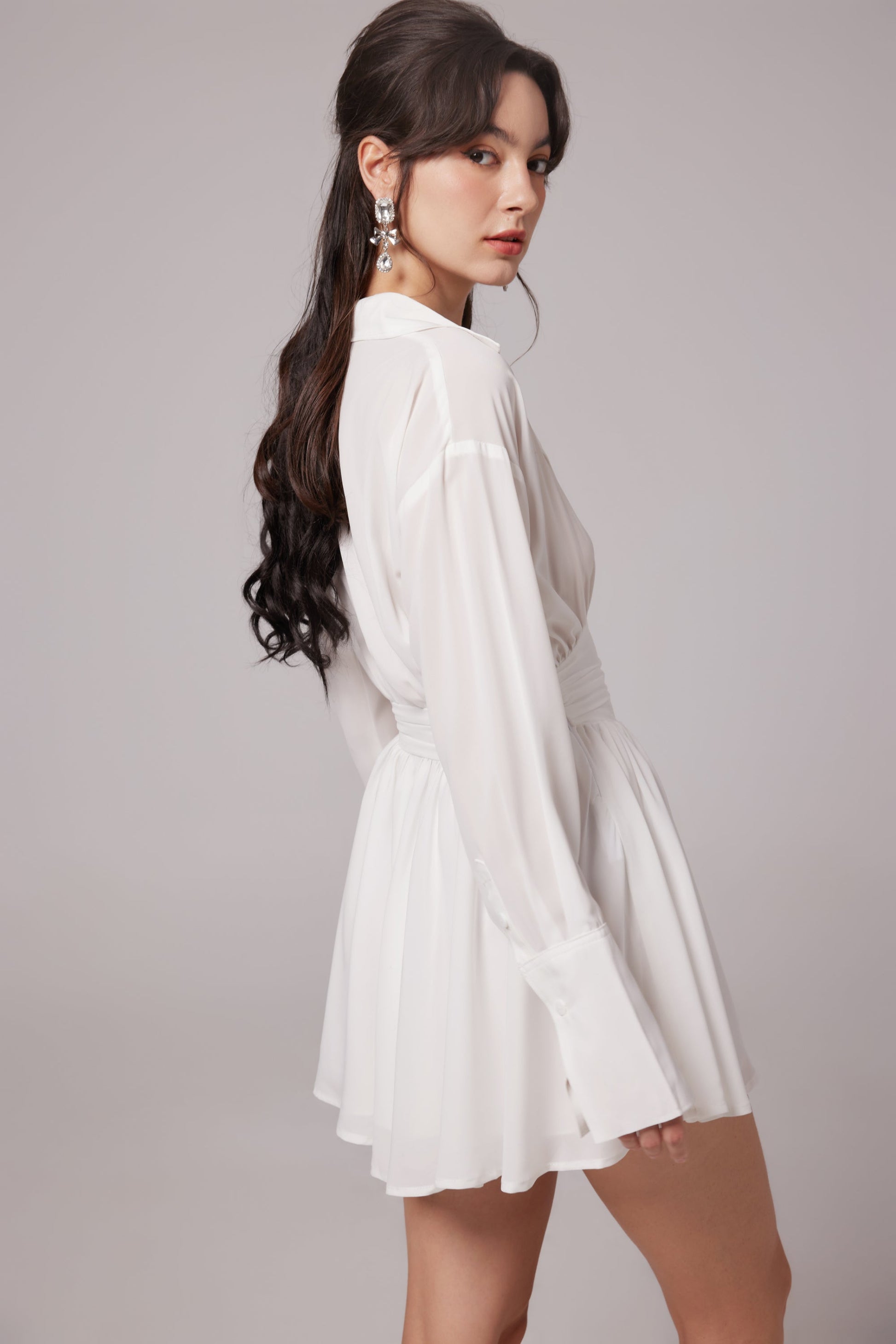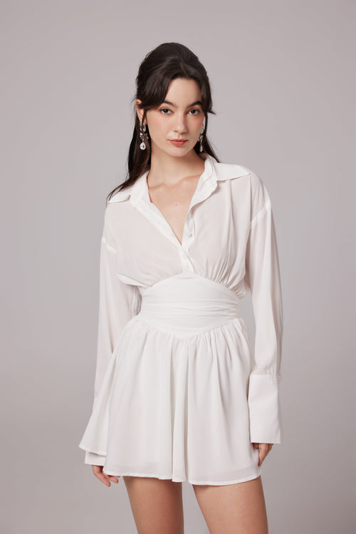 Snow White ruched mini shirt dress