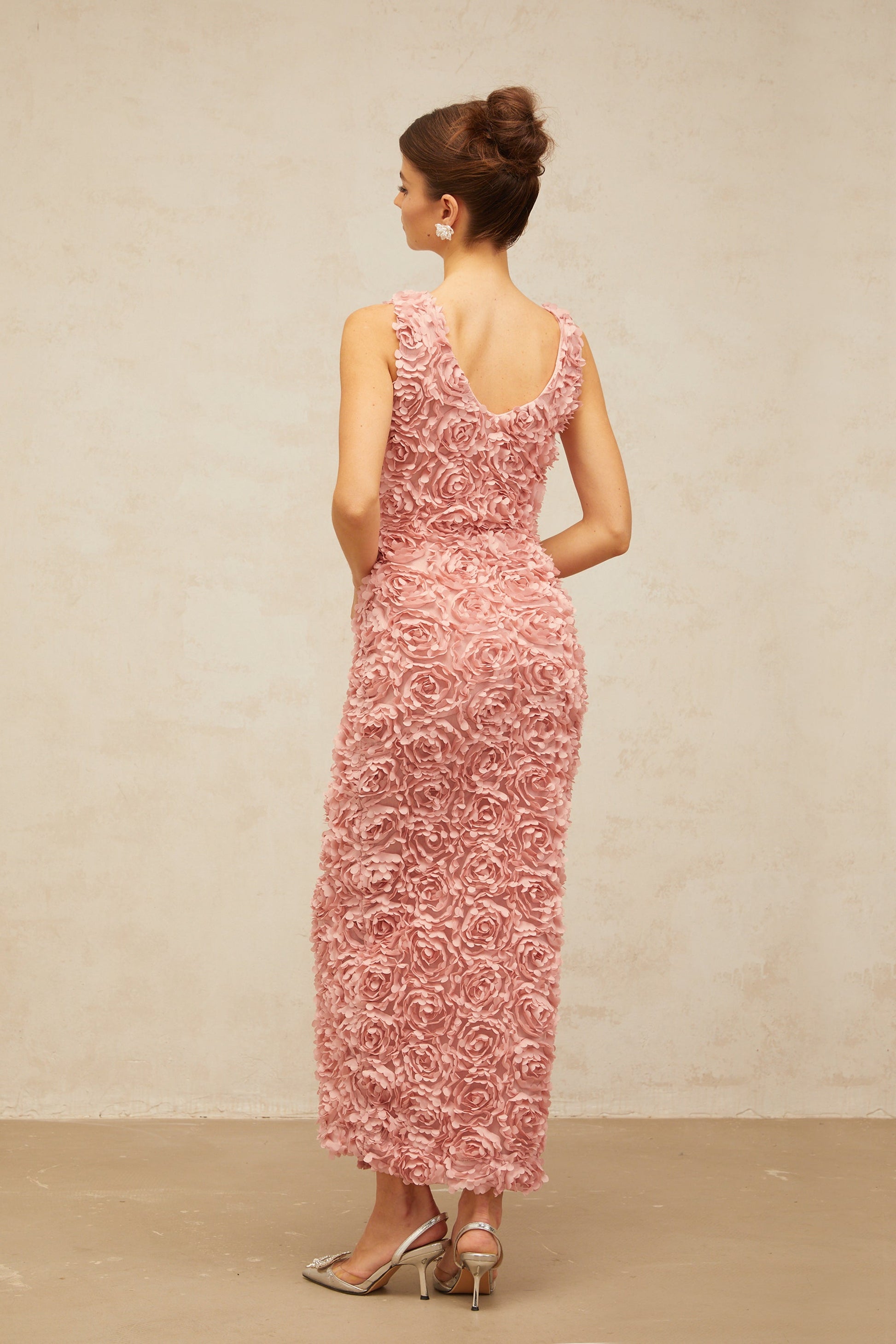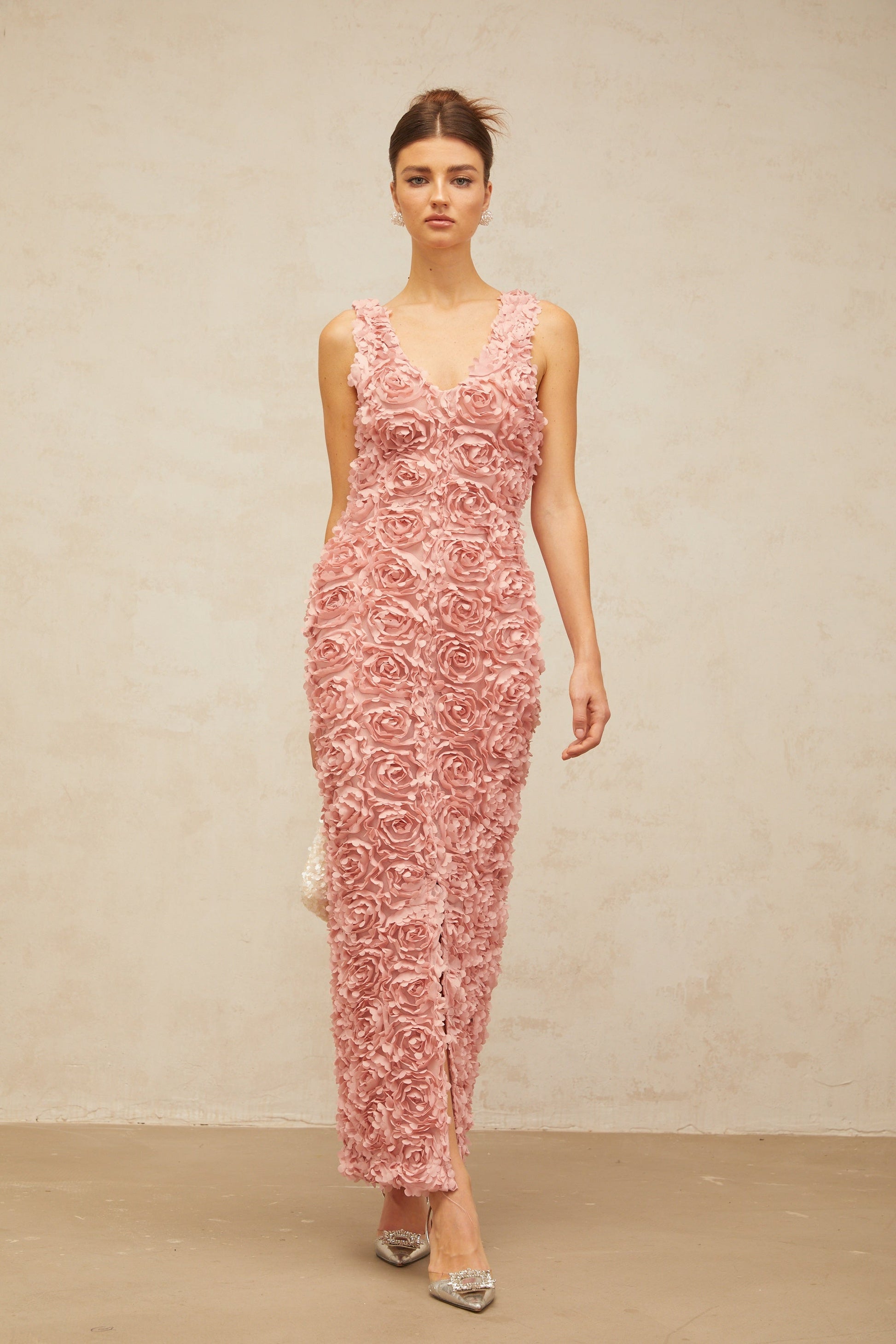 Sylvie faux-flower V-neck maxi dress in Pink