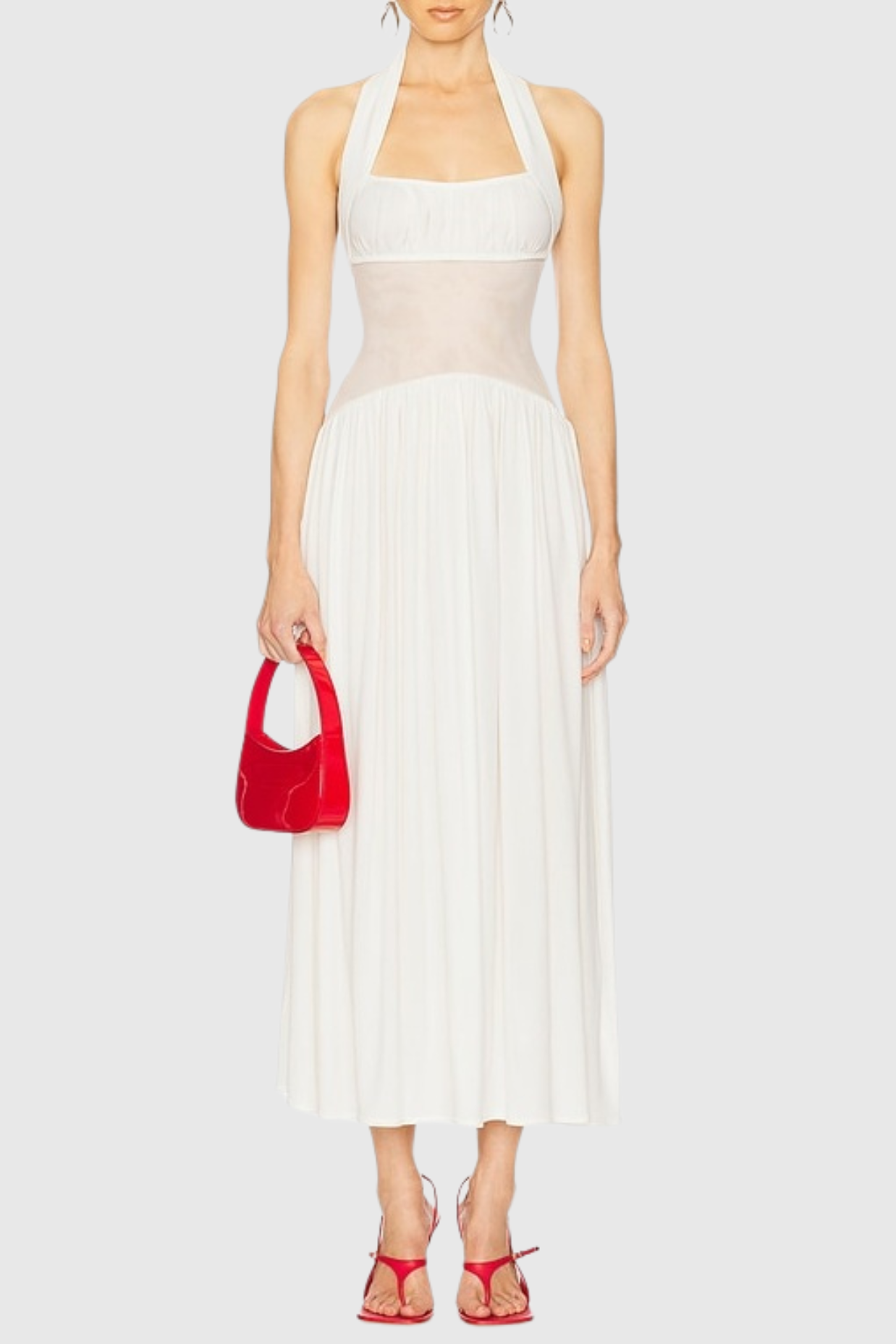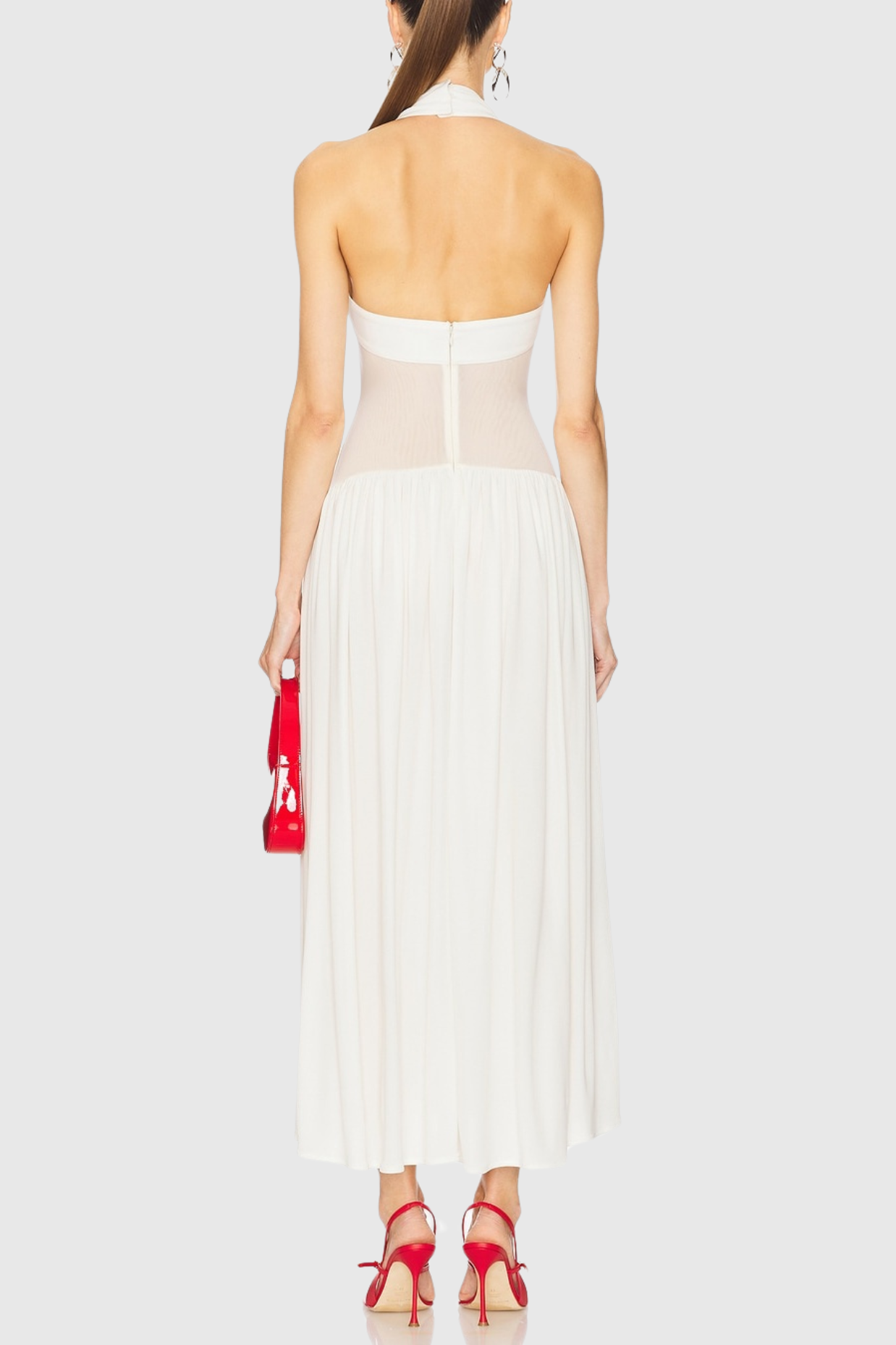 Tameron Halter Mesh Ruffle Maxi Dress