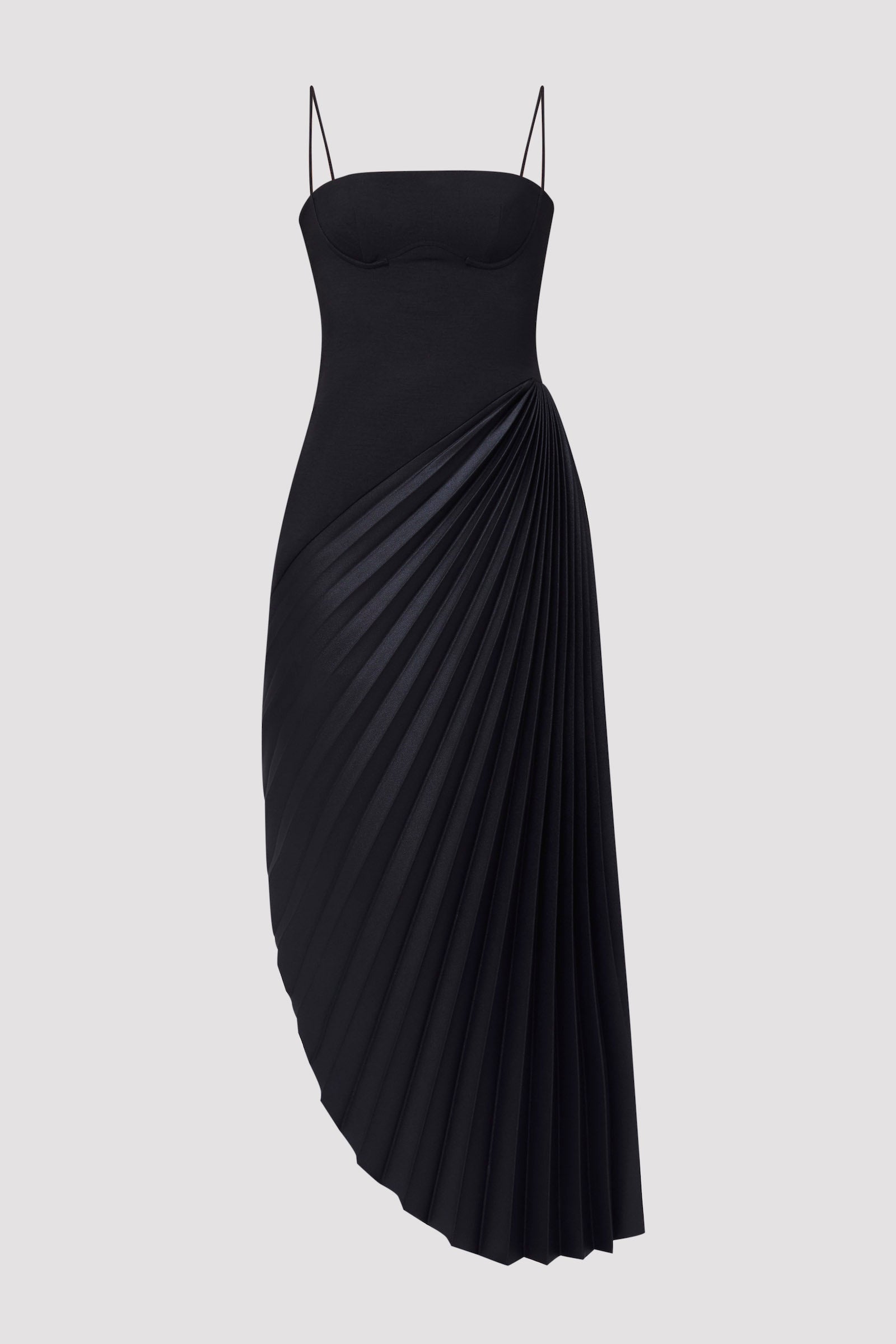 Taron Spaghetti Strap Asymmetric Pleat Maxi Dress