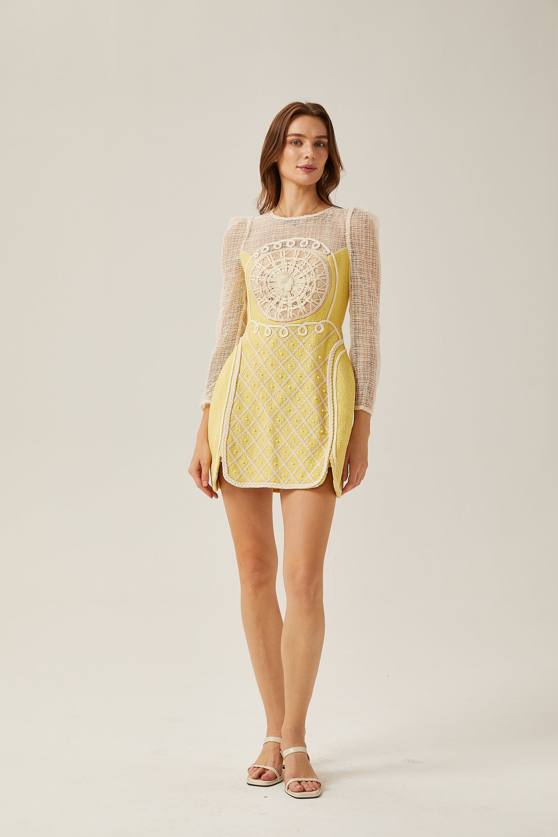 Tatiana pearl-embellished semi-sheer mini dress