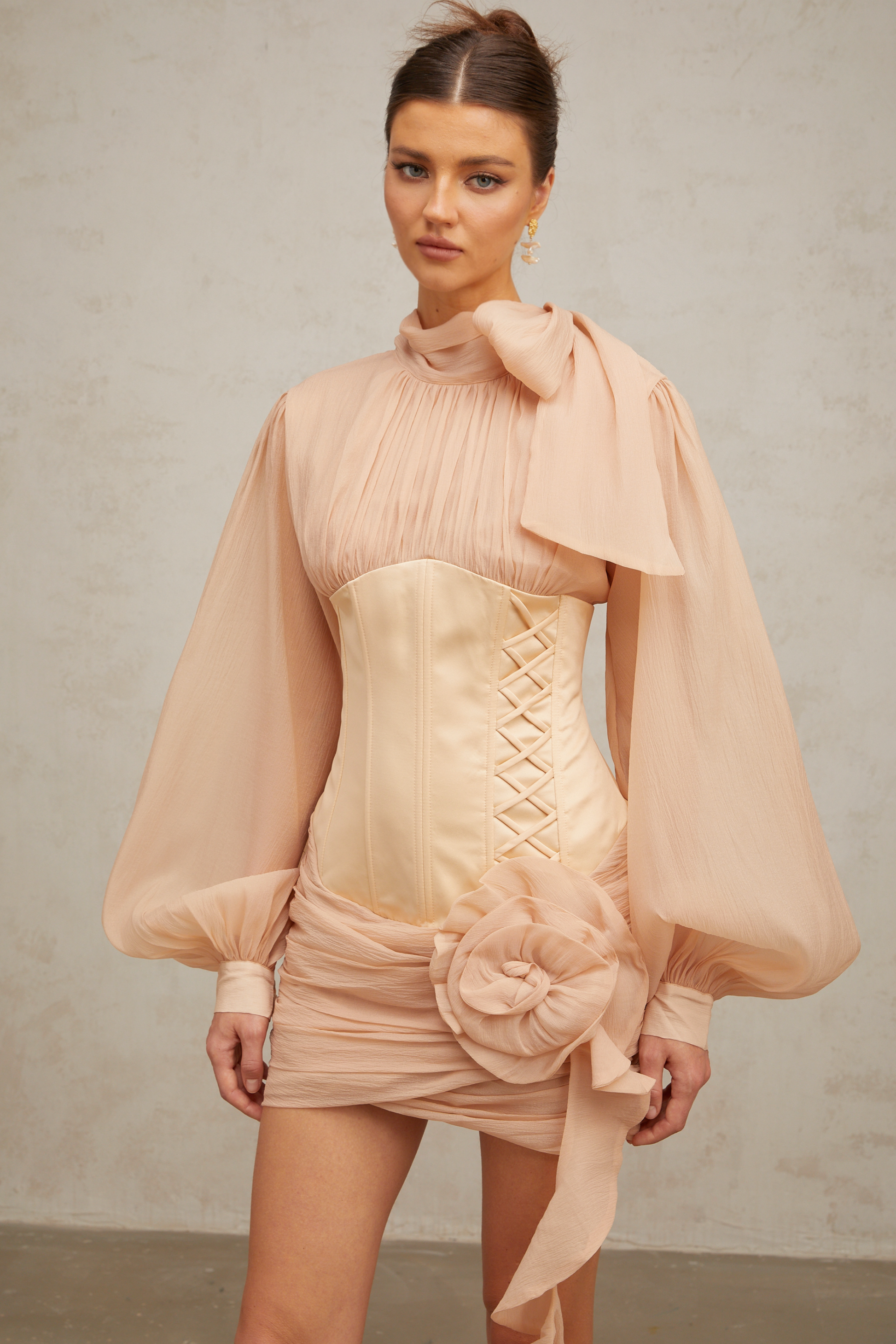 • Ribbon tie-neck detailing