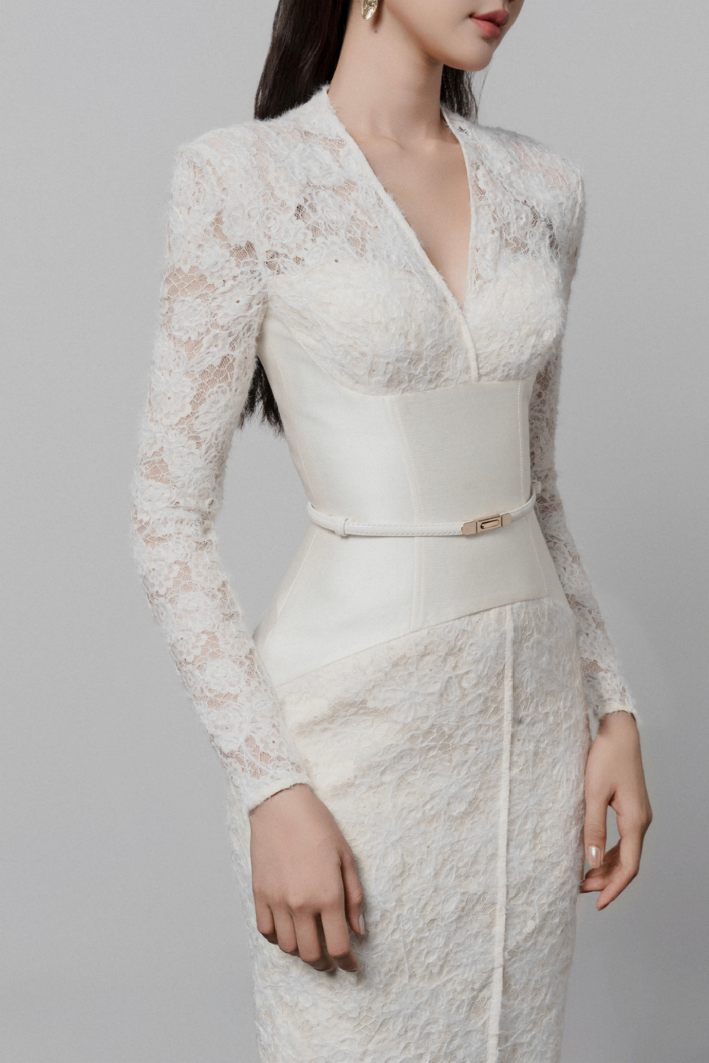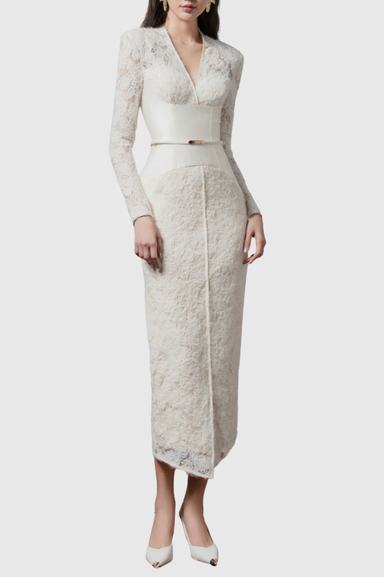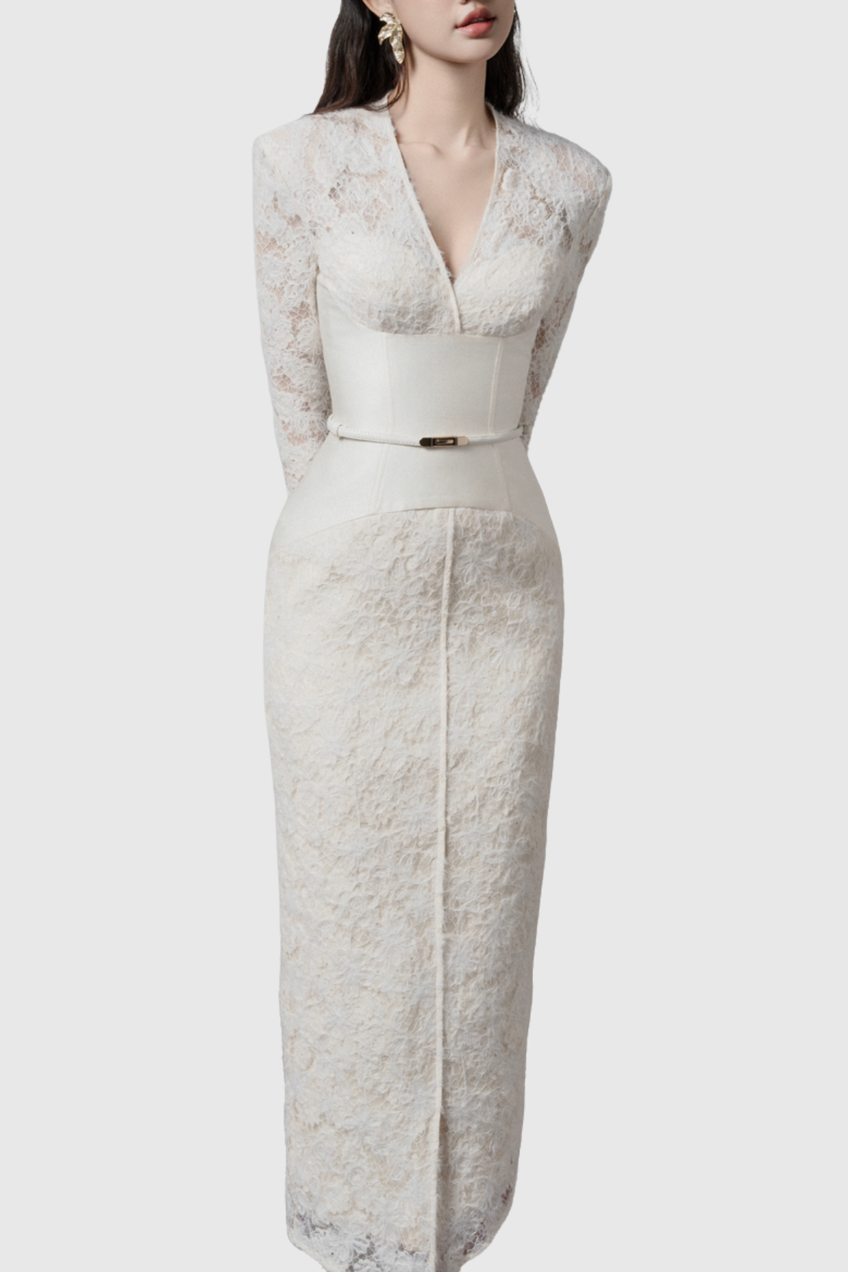 Thadda Lace Corset Belted Midi Dress