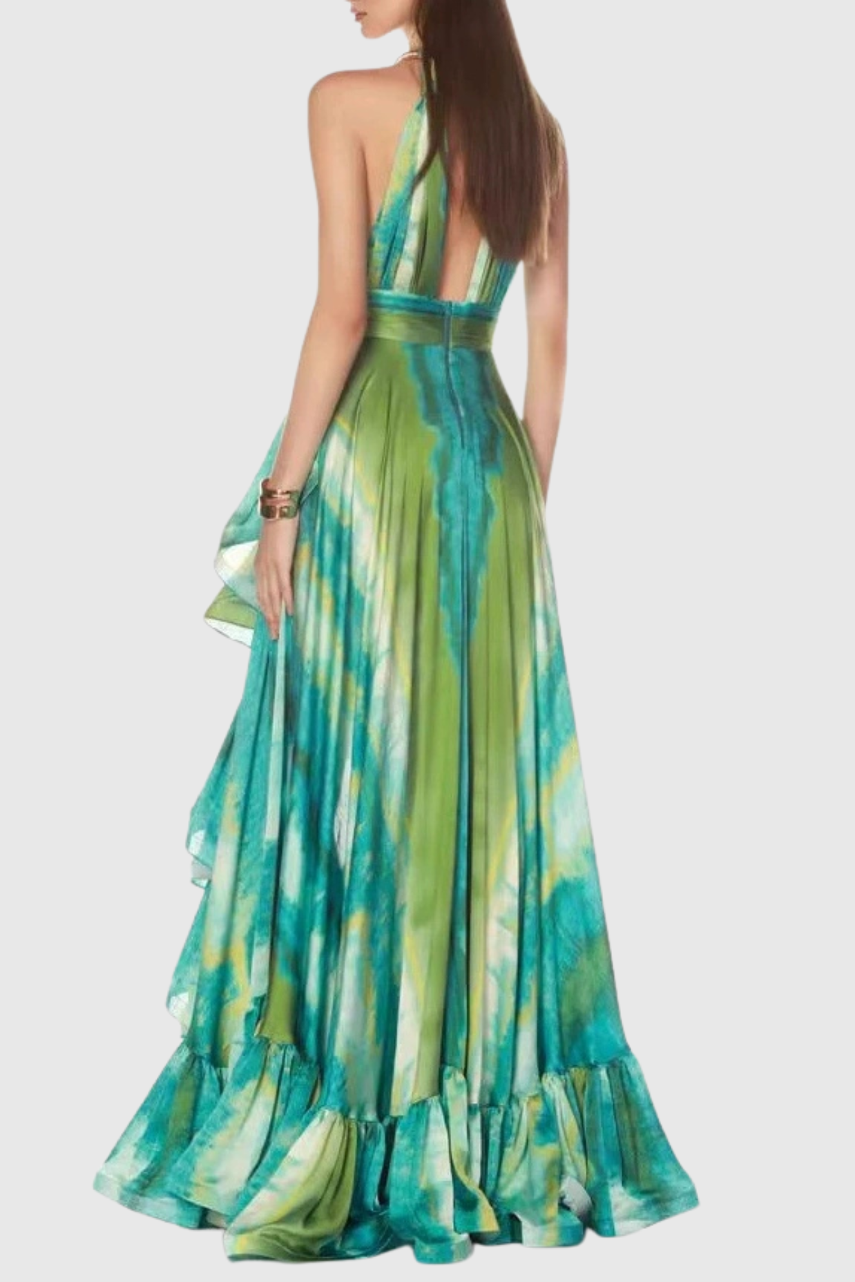 Thata Halter Printed Cutout Ruffle Maxi Dress